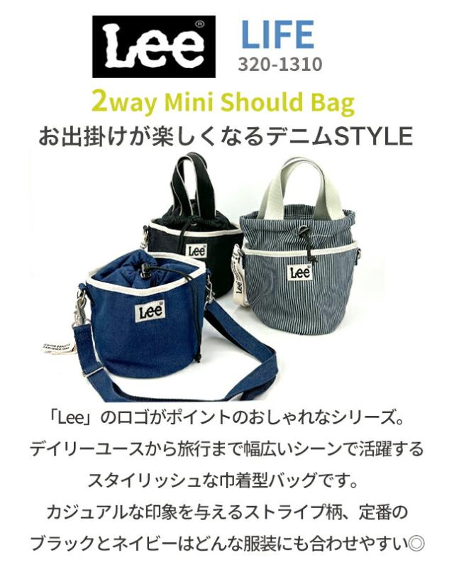 ショルダーバッグ 斜めがけバッグ 巾着型 レディース Lee リー Life 2wayショルダーバッグ トートバッグ ミニトート ミニショルダー 帆布 軽量 斜め掛け カジュアル おしゃれ かっこいい シンプル 中学生 高校生 大学生 ママ 人気 旅行 ブラック ネイビー ストライプ