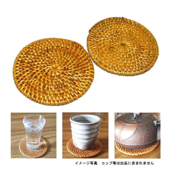 ラタン製 コースター 2個セット 藤 アジア雑貨 インドネシア 和洋どちらにも合います (市/B)♪