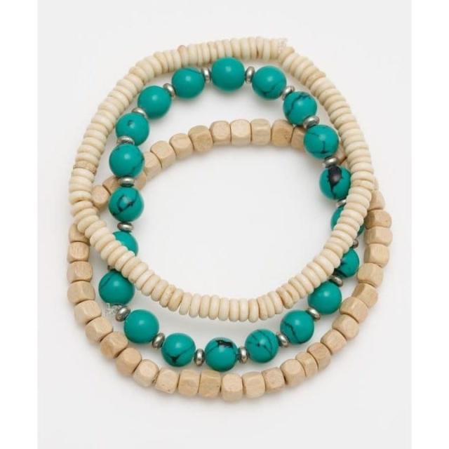 3連セットのブレスレット。シンプルな色使いで普段使いしやすいアイテム。