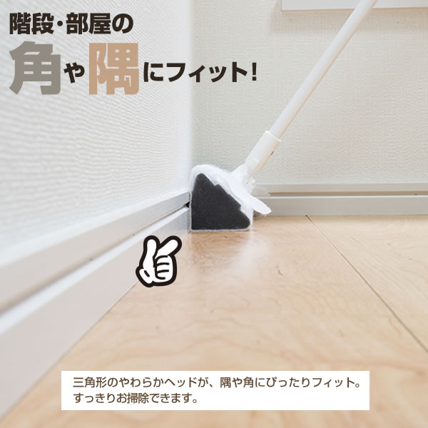 掃き掃除もOK三角スポンジの先端で、ほうきのように大きなゴミを掃き集めることができます。