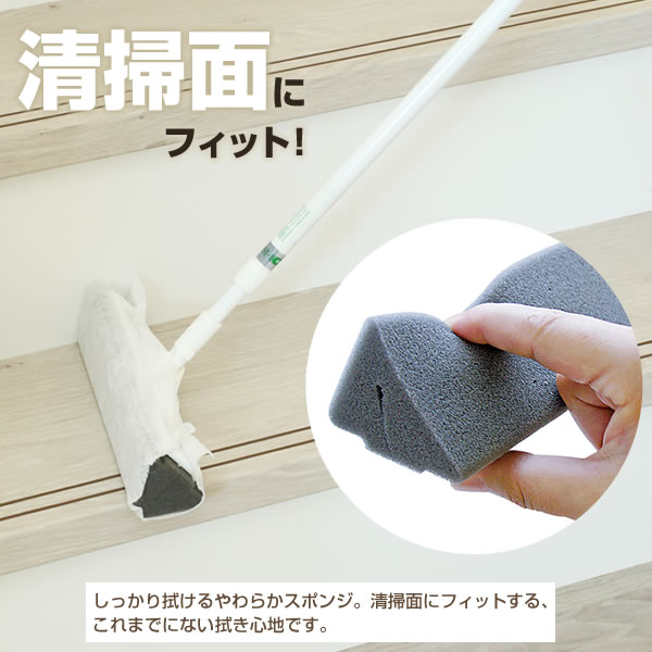 階段・部屋の隅や角にフィット!やわらかヘッドのフロアワイパー。