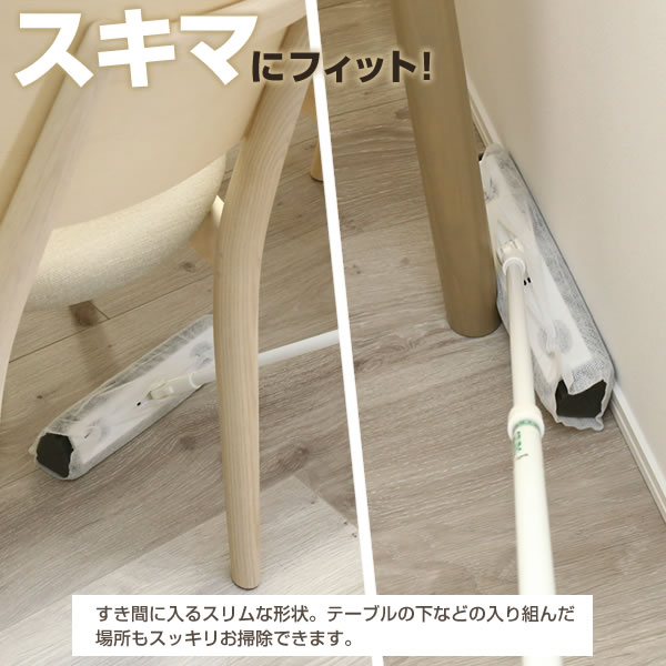 また、フローリングワイパーとして細かいホコリを拭き取ることができるので、掃きながら拭き掃除ができます。
