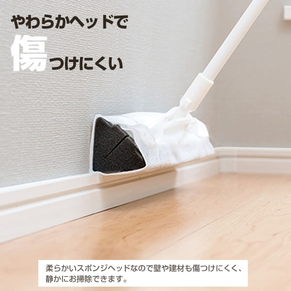 傷つけにくい柔らかいスポンジヘッドなので、壁や建材も傷つけにくく、静かにお掃除できます。
