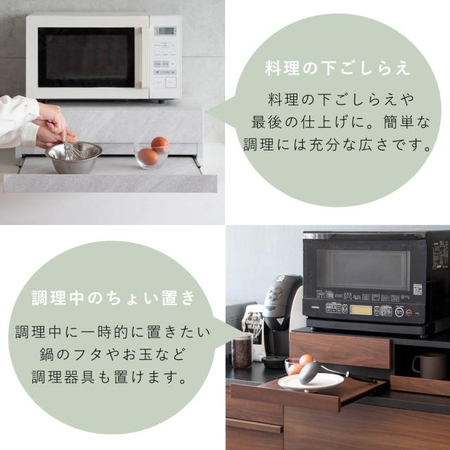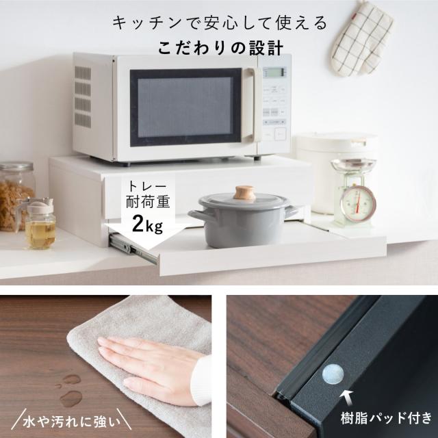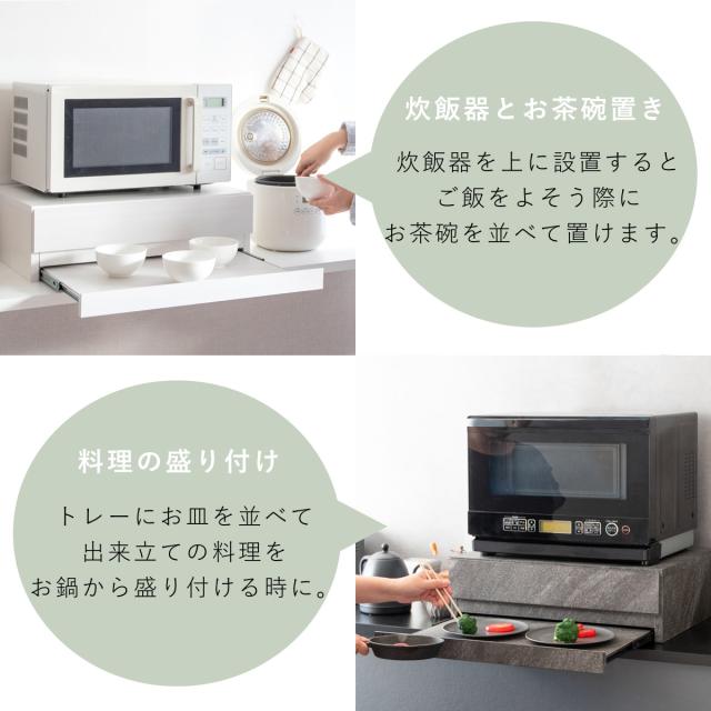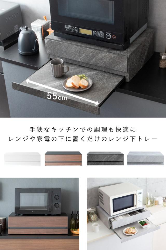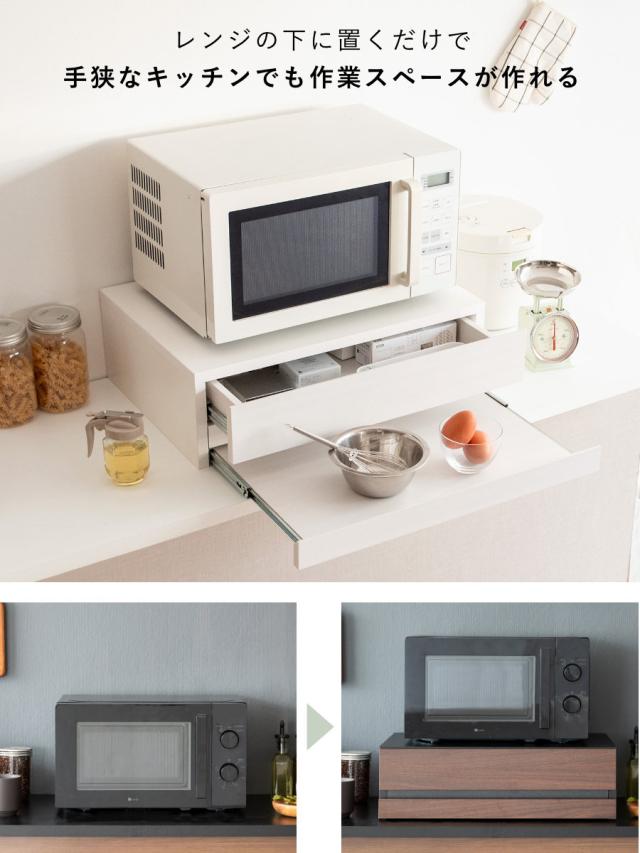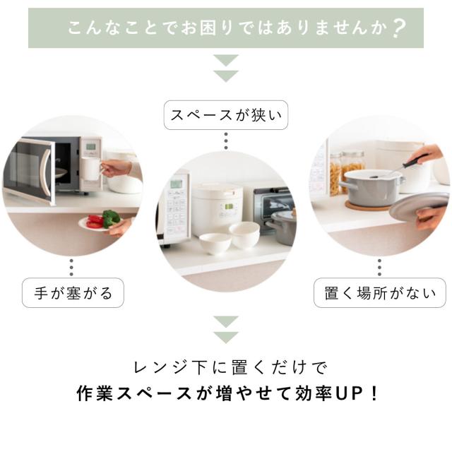 レンジや家電の下に置くだけで、収納+作業スペースが作れる