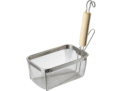 18-8 角型うどん揚げ木柄 縦型浅型 (003125-005) 麺 湯切り 茹で麺 冷凍麺 台所 キッチン 給食 外食 レストラン 食品工場 厨房 厨房道具 調理器具 業務用 業務 施設 学校 介護施設 食堂