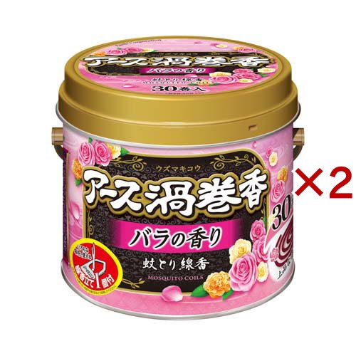 アース渦巻香 蚊取り線香 バラの香り 缶入 駆除 侵入防止 アウトドア(30巻入×2セット)[虫除け 線香タイプ]