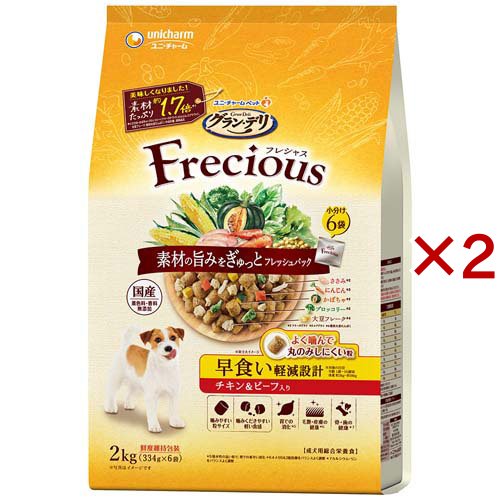 グラン・デリ フレシャス(Frecious) ドッグフード 早食い軽減設計 チキン&ビーフ(2kg(334g×6袋)×2セット)[犬用品]