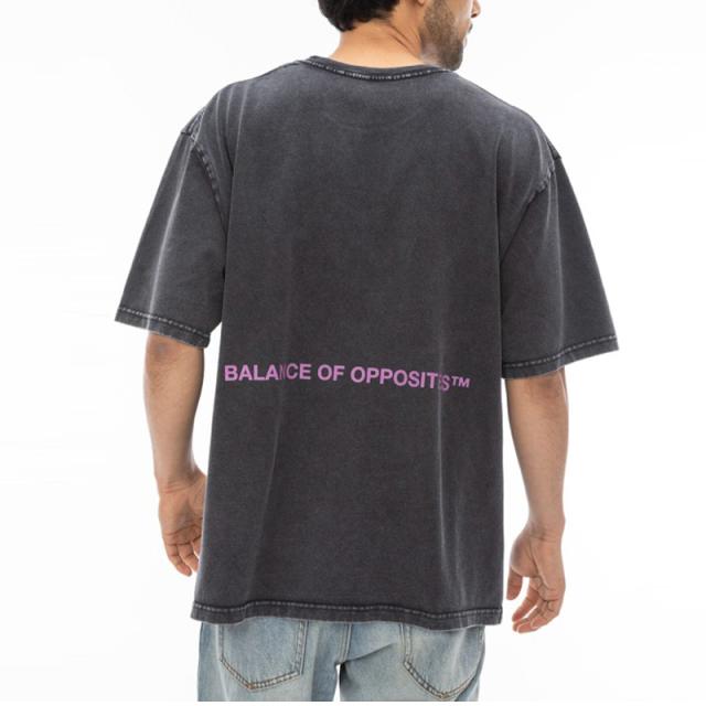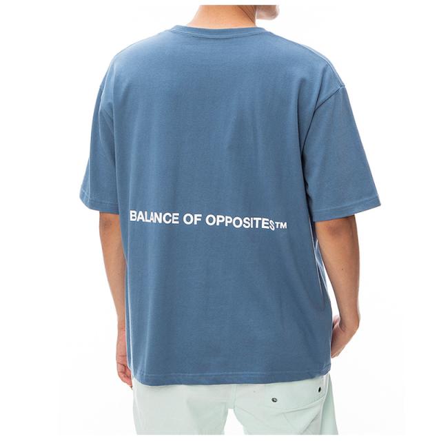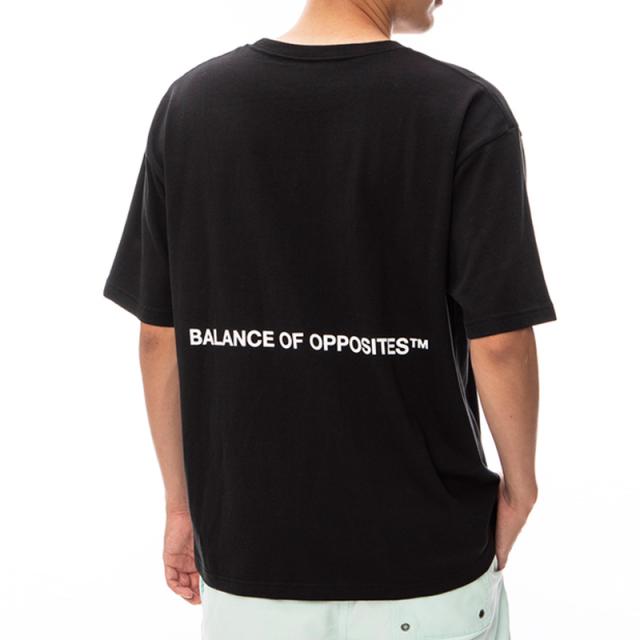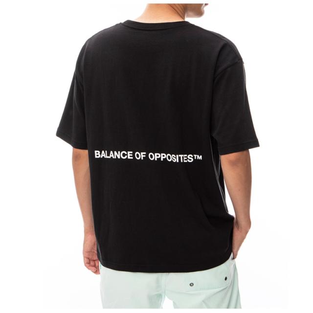 フロントにRVCAロゴ、バックにBALANCE OF OPPOSITESをプリントしたクルーネックTシャツ。