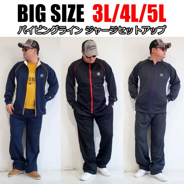 ジャージ 上下 メンズ 大きいサイズ セットアップ 3L 4L 5L ビックサイズ キングサイズ 年間定番 部屋着 ルームウエア 速乾 ブラック ネイビー チャコール 大人 30代 40代 50代 おしゃれ おすすめ パイピングライン おうち おうちコーデ プレゼント ギフト