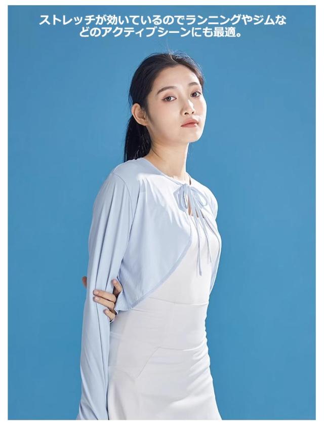 レディース ショート丈 パーカー ポンチョ 快適 長袖 マント 接触冷感 ライトアウター 風通し 日よけ カーディガン UPF50+ 指穴 前後差 吸汗 体型カバー トップス UVカット 速乾 ストレッチ 日焼け防止 服 サイクリング 自転車