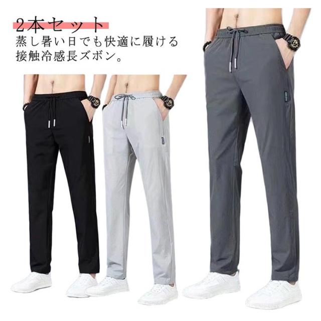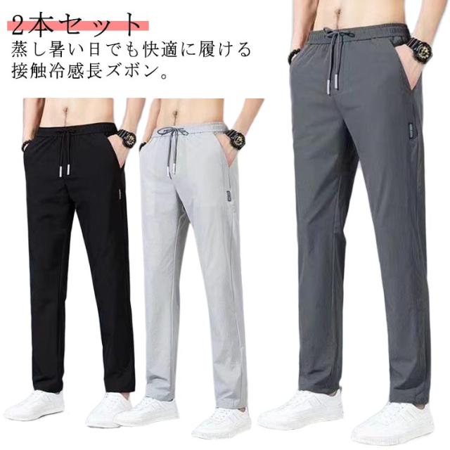 接触冷感 ロングパンツ ひんやり チノパン ゴルフパンツ カジュアル スキニーパンツ ロング ボトムス 2本セット 2本セット 涼しい 薄手 長ズボン 速乾 通気 ウエストゴム 春 夏 秋
