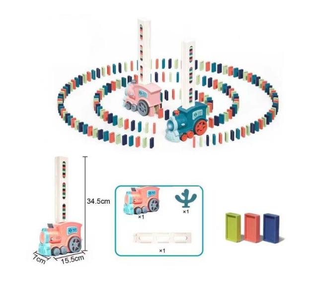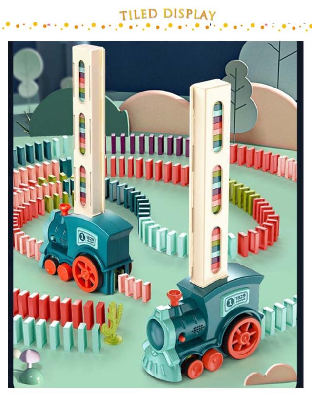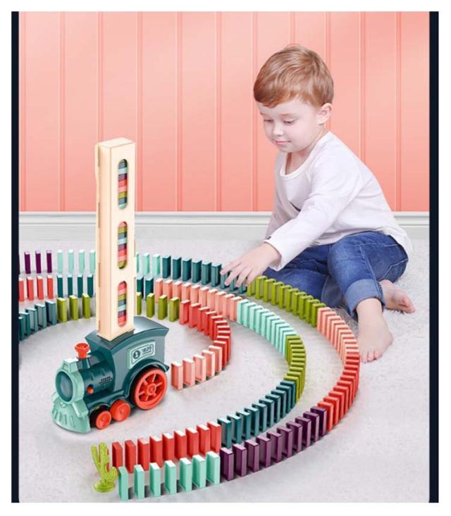 | ドミノトレイン 260枚 ブロックを倒してしまわないように並べ続ける遊びですのでお子様1人遊びはもちるん、兄弟や家族でも一緒に遊べます 車が左右の方向を調整することができ、ドミノを自働的に並べ替えることができるおもちゃ | |