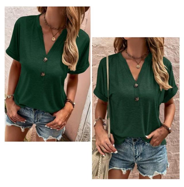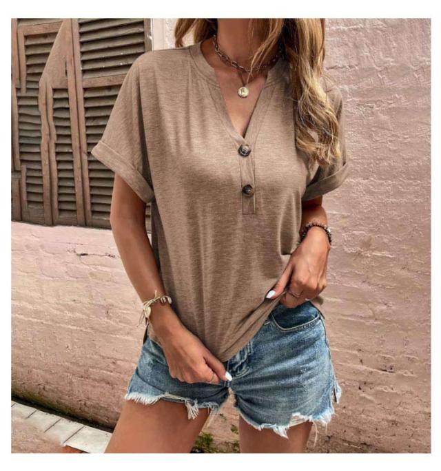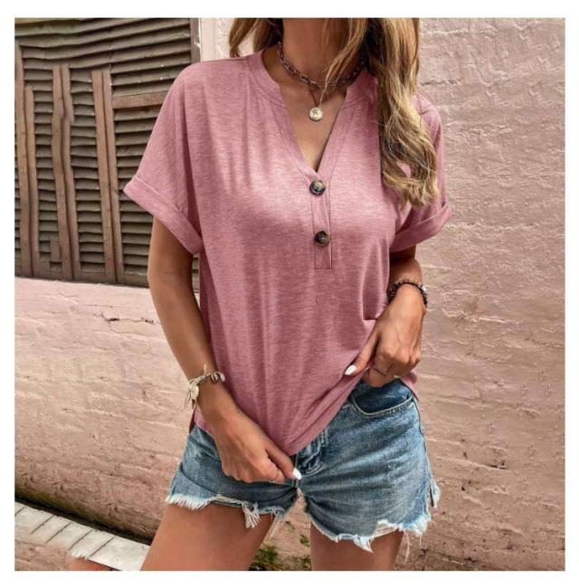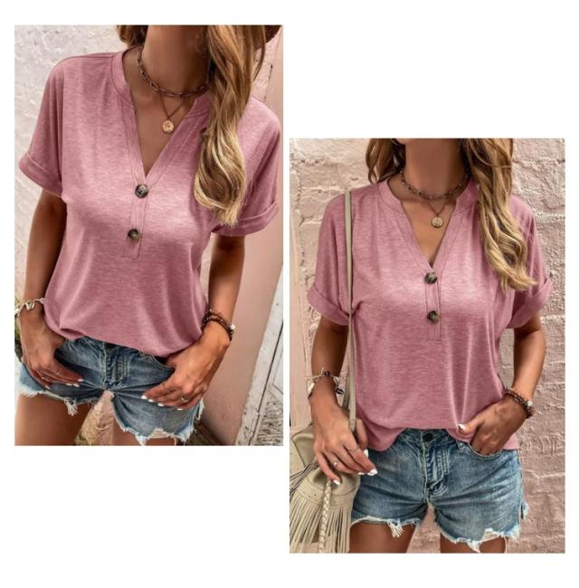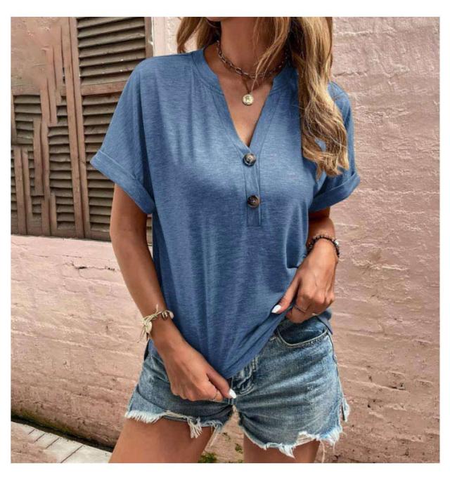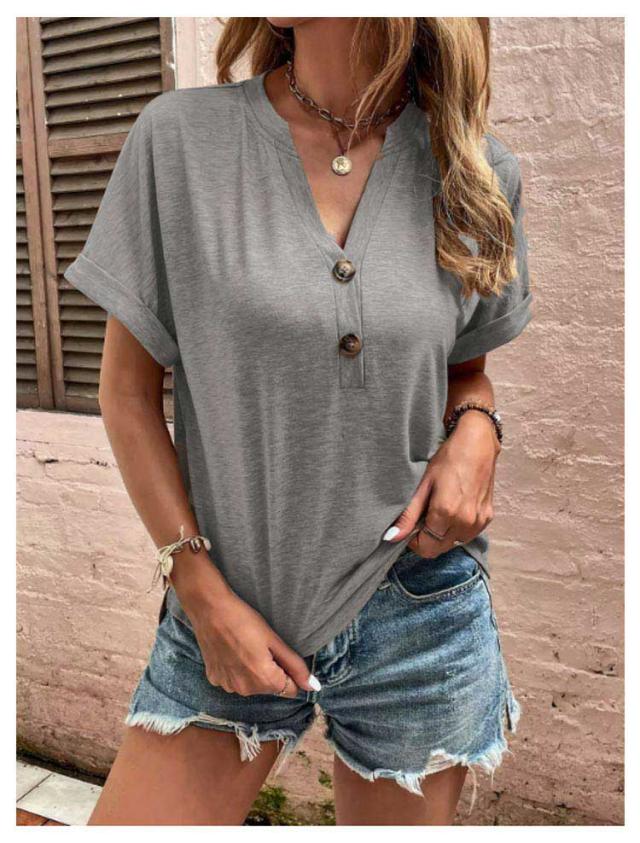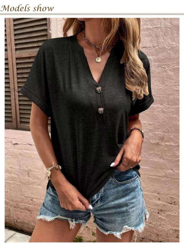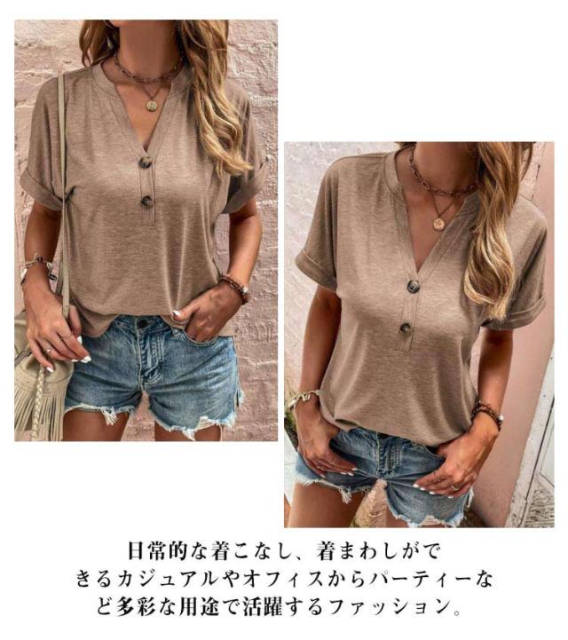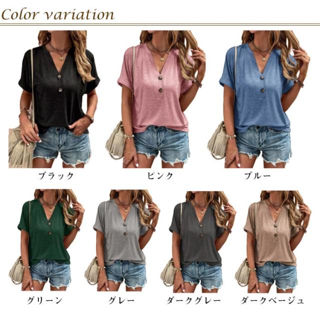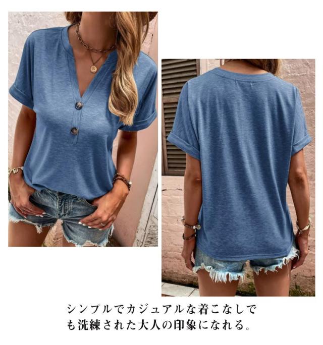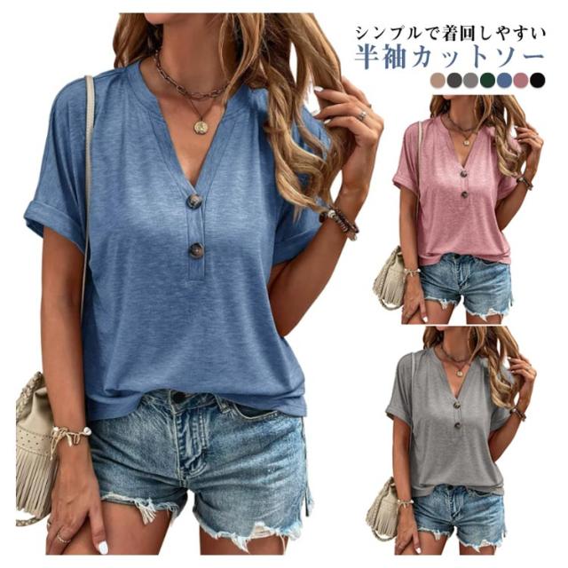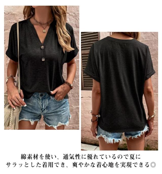 tシャツ レディース 半袖 カットソー 春夏 綿 Vネック トップス 半袖tシャツ ボタン付き 無地 肌触りの良い素材 カジュアル ゆったり おしゃれ 透けにくい 大きいサイズ シンプル 着痩せ 50代 40代 30代 体型カバー