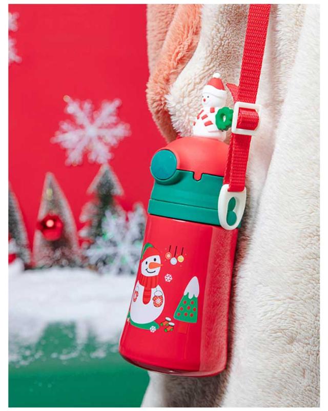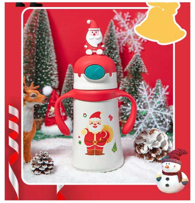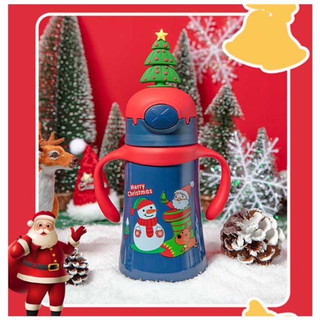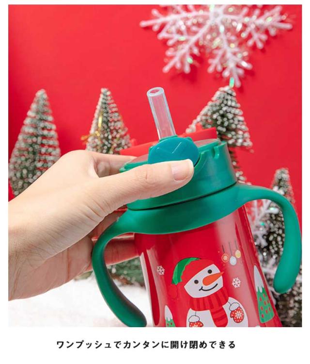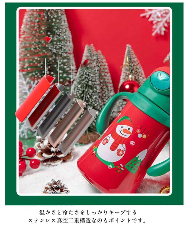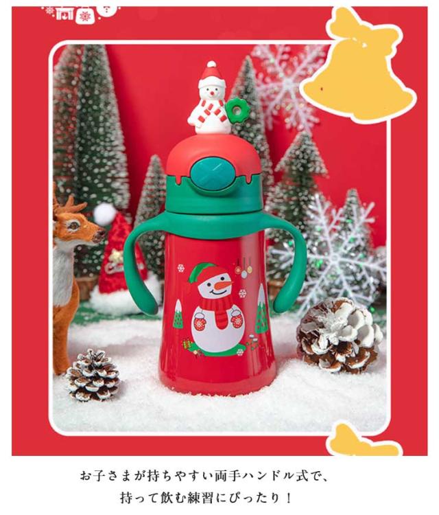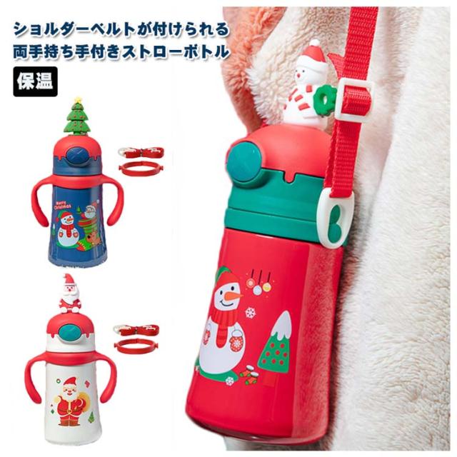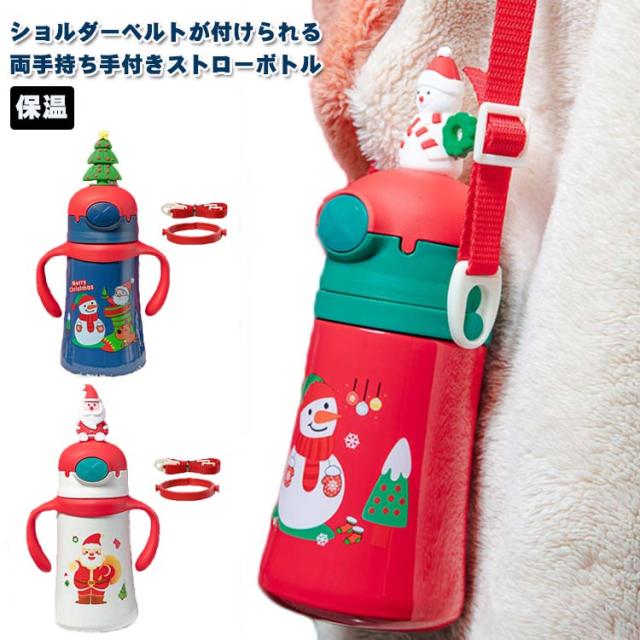 保温保冷 子供用水筒 男の子 360ml 両手 持ち手付き ステンレス製 ステンレスマグ ベビー 軽量 女の子 子供用水筒 赤ちゃん 魔法瓶 ワンタッチ 漏れない 肩掛け プレゼント ギフト かわいい 小学生 入学 入園 出産祝い クリスマス サンタクロース