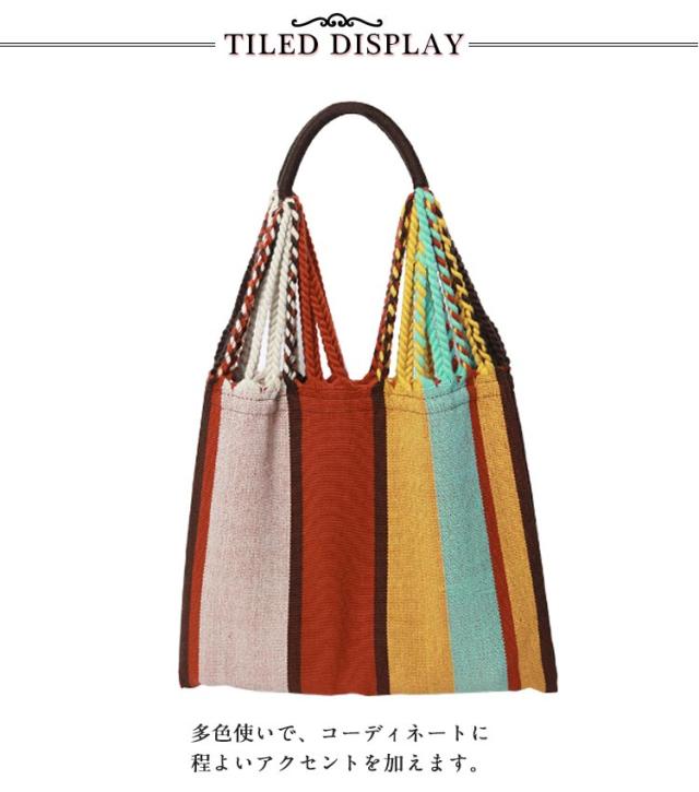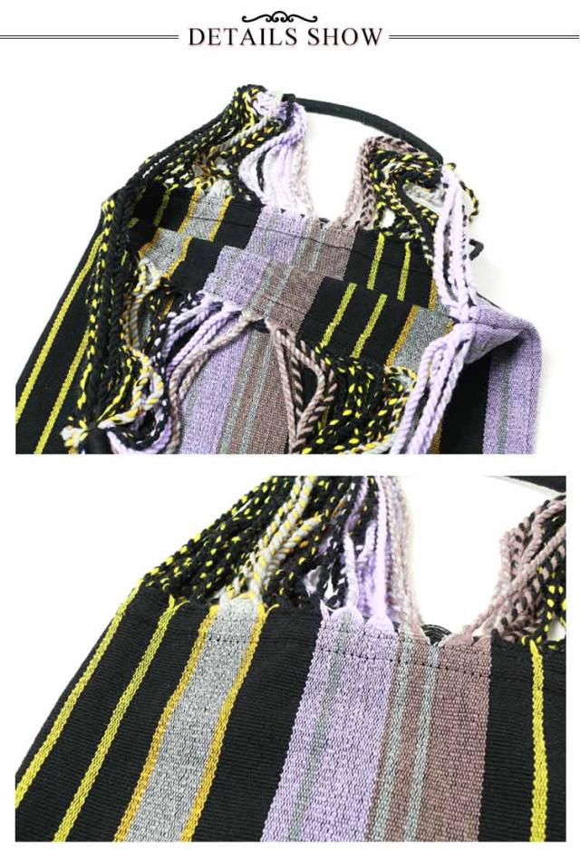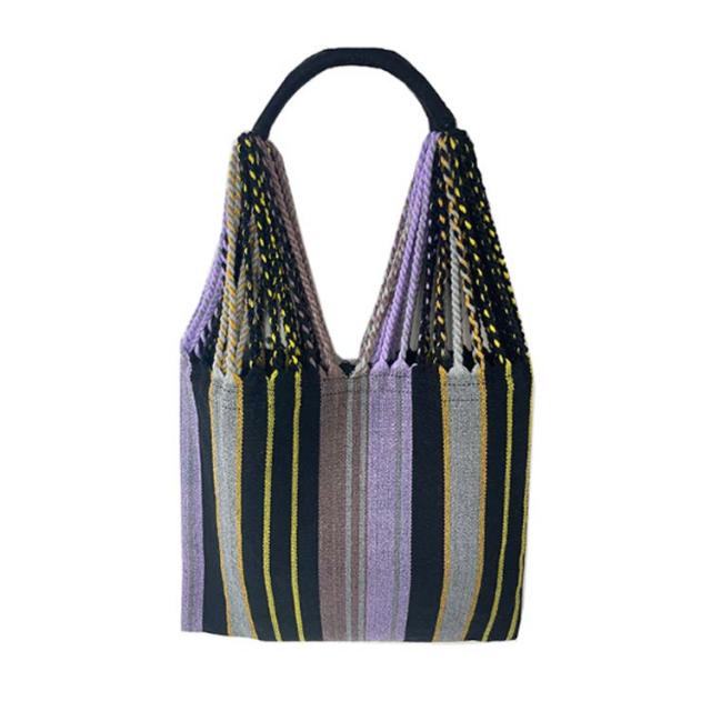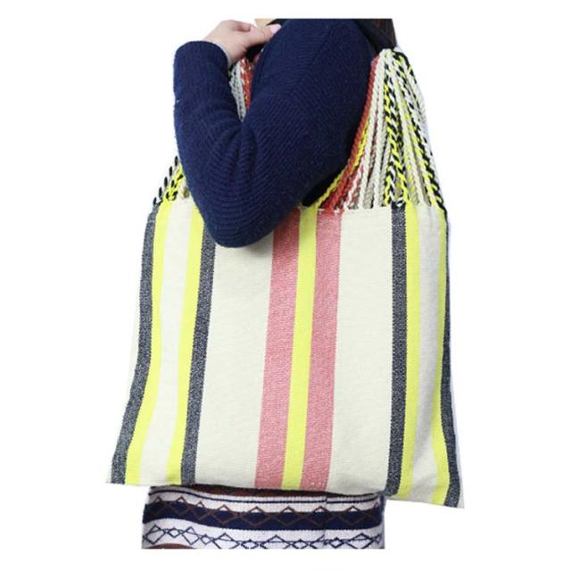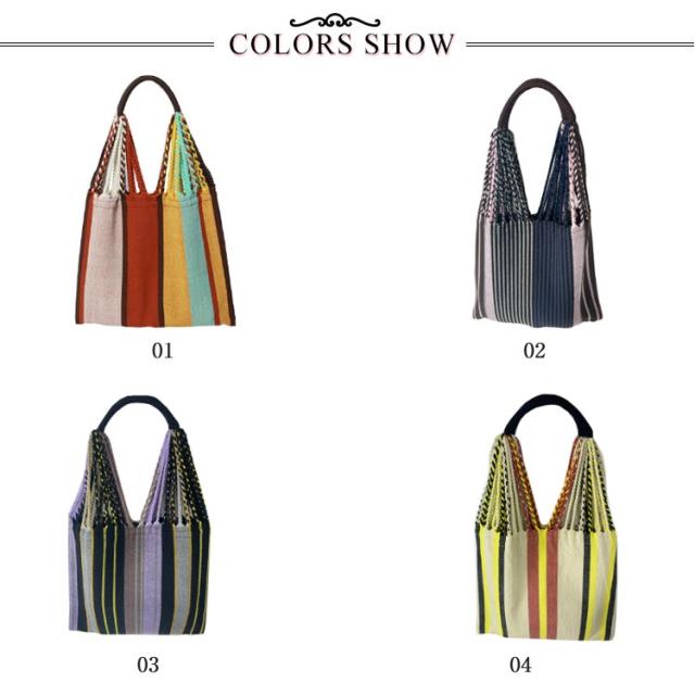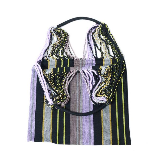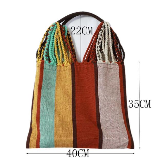 ハンモックバッグ ハンモックバッグ A4サイズ 透かし織り レディース 紐編み カジュアル ストライプ おしゃれ 大容量 バッグ 配色 軽量 折りたたみ キャンプ アウトドア 旅行