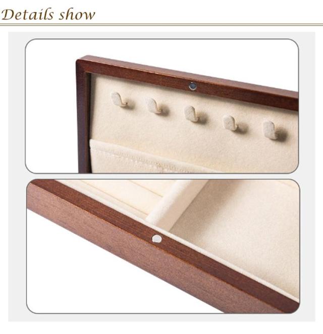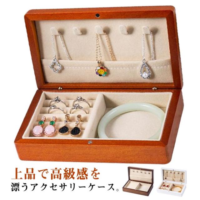 | 上品で高級感を漂うアクセサリーケース。 ナチュラルな木製デザイン、大切なアクセサリーを美しく収納できる! 収納は区切りを設け、指輪やピアス、時計、ネックレスなど様々なジュエリーを収納できるようデザインされており収納性に優れています。 蓋と本体には各2カ所マグネットを装備し、しっかりと閉めることができます。 収納エリアには柔らかく弾力性に優れたフランネル素材を使用しております。お気に入りのジュエリーを傷や摩擦から守ります。 | |