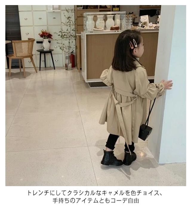 | 90cm 〜 140cm 春秋ファッションに欠かせない、実用性も季節感もたっぷりの定番アウター トレンチにしてクラシカルなキャメルを色チョイス、手持ちのアイテムともコーデ自由 | |