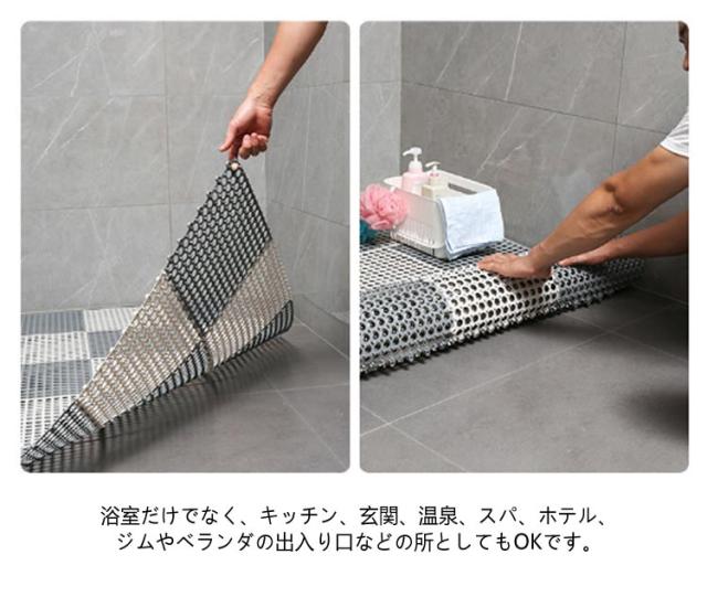 | はめ込み設計、組み立てが簡単で便利です! 優れた滑り止め性能を発揮、ご家族の安全を守るお風呂マット! お風呂場で転ぶ危険は、お年寄りや妊婦、赤ちゃんを脅かすだけではありません。 家族の安全のために、この滑り止め効果抜群のバスマットを選びましょう。 浴室などの適用場所の形に合わせて裁断できます。 ご必要な形と大きさによって、自由にDIYください。 浴室を敷き詰めると滑り止め効果抜群! 浴室だけでなく、キッチン、玄関、温泉、スパ、ホテル、ジムやベランダの出入り口などの所としてもOKです。 | |