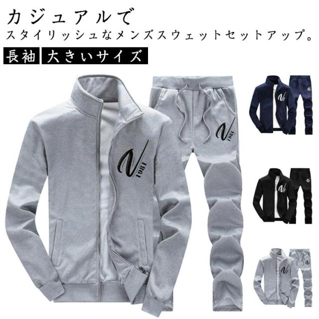 メンズ スウェットパンツ 大きいサイズ 上下 セットアップ 長袖 部屋着 スポーツウェア スウェット 春秋 フルジップ スウェット ルームウェア フードなし ハイネック アウター ジャケット スウェット