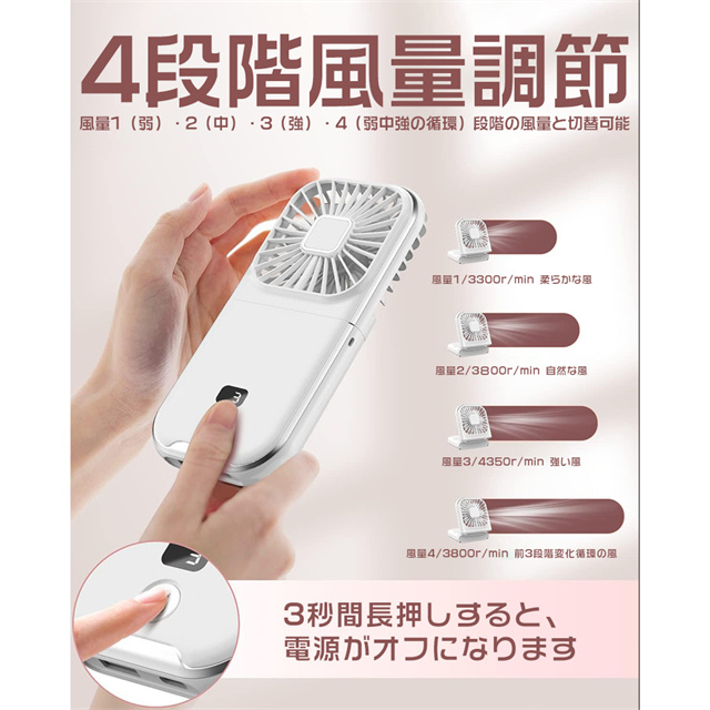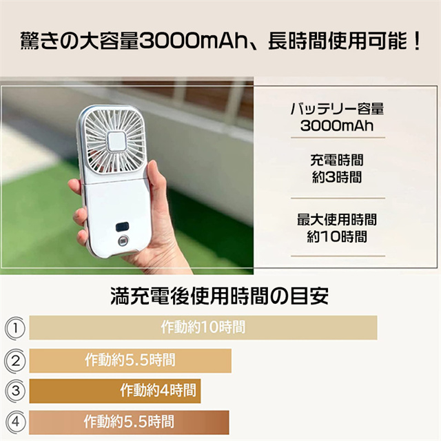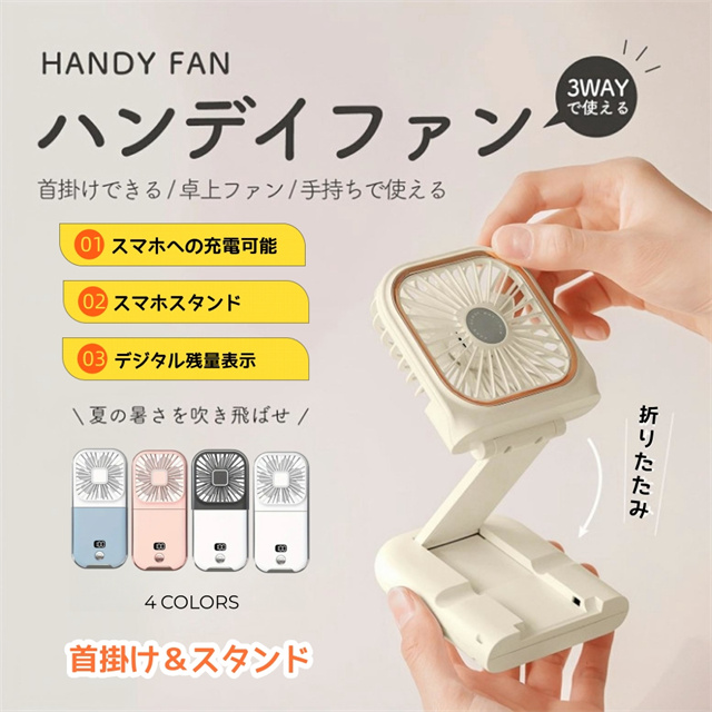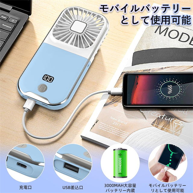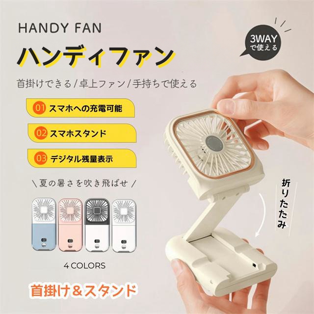 扇風機 ハンディファン 手持ち扇風機 首掛け扇風機 熱中症対策 静音 モバイルバッテリー 卓上 スマホスタンド ポータブル