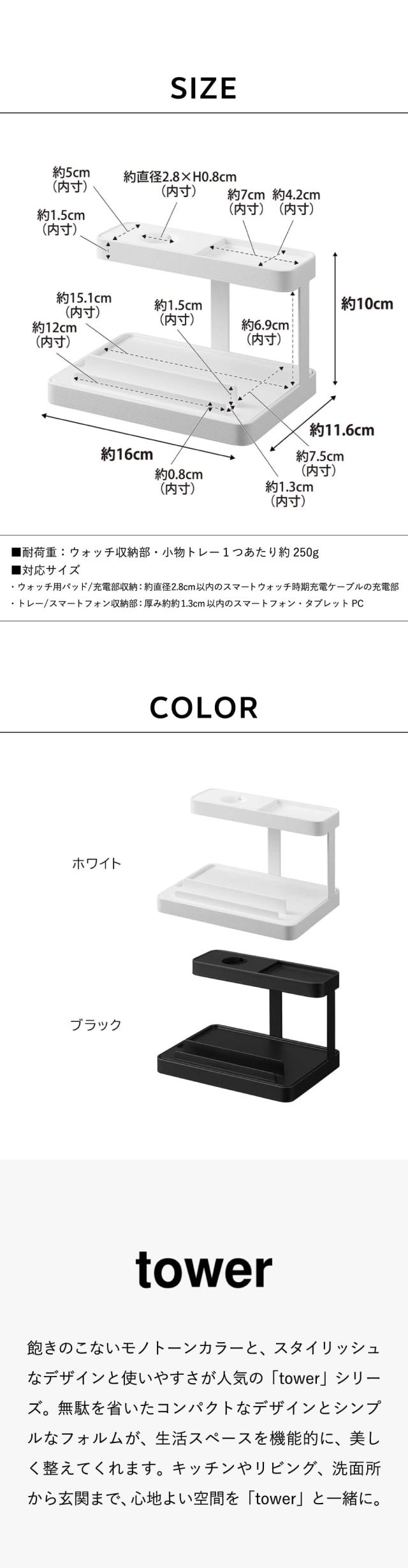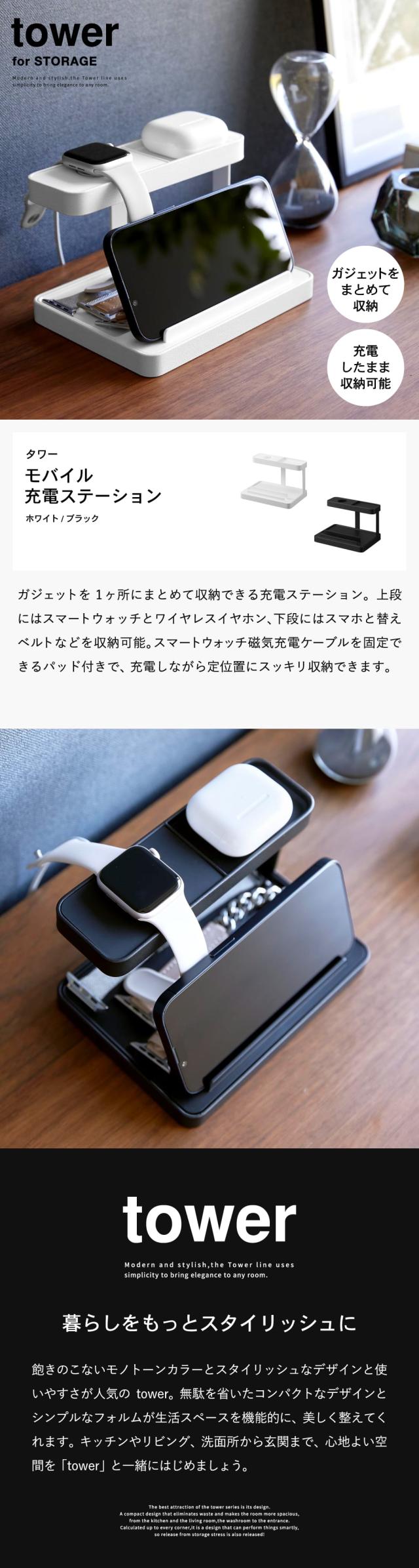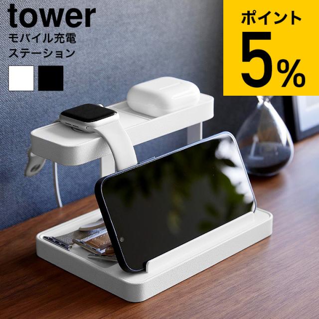 tower 山崎実業 モバイル充電ステーション タワー 収納 1871 1872 ホワイト ブラック 送料無料 デスク ワイヤレスイヤホン スマートウォッチ スマホスタンド タブレットスタンド タワーシリーズ