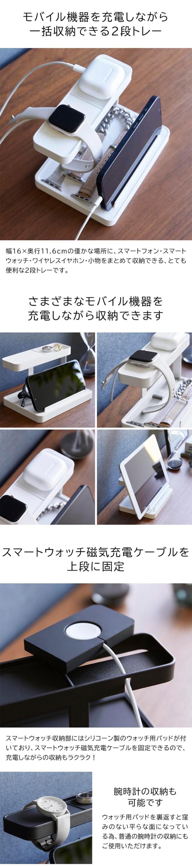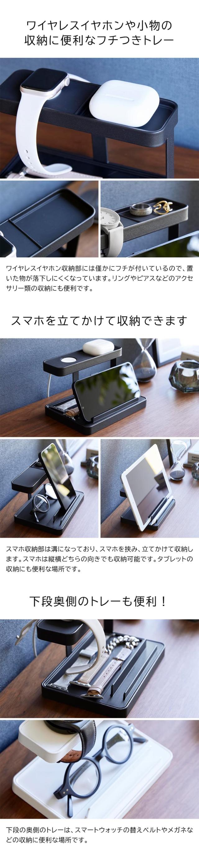 スマホやスマートウォッチ、ワイヤレスイヤホンをコンパクトに一括収納できるモバイル充電ステーション スマートウォッチの替えベルトやメガネ、アクセサリーの収納にも便利 yamazaki