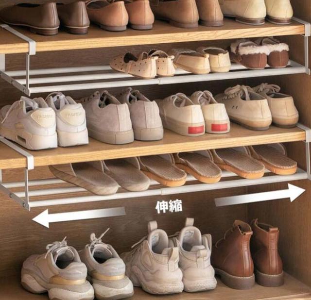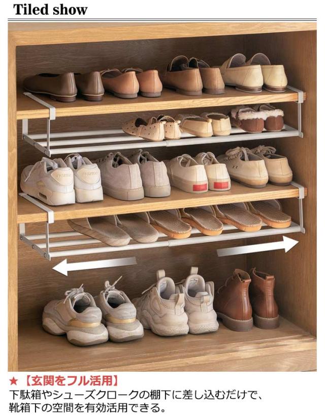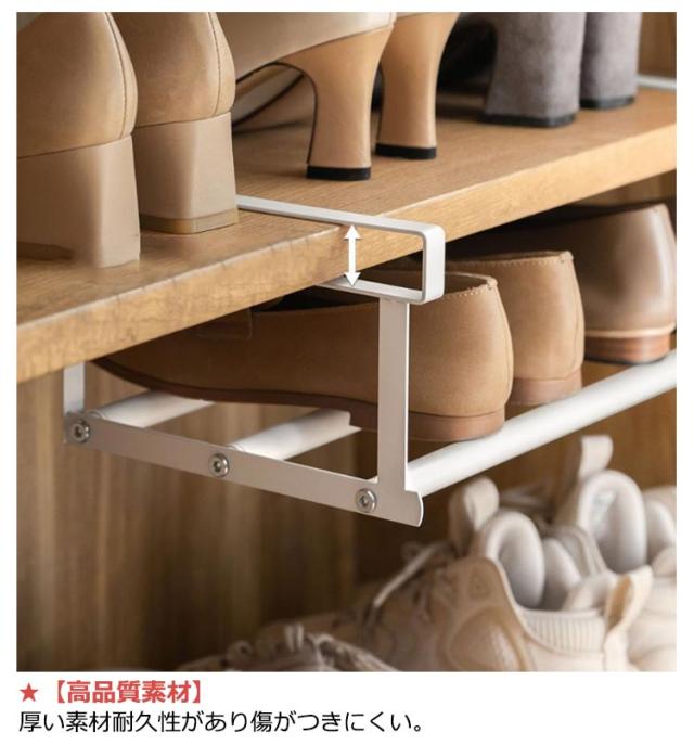靴箱 シューズラック 伸縮 玄関 引っ掛け式 浮かせるシューズラック 伸縮式靴掛け 浮かせる伸縮シューズラック 靴収納 省スペース 浮かせるシューズラック 狭い 靴棚 下駄箱 コンパクト スリム 小物 収納 シンプル ナチュラル おしゃれ