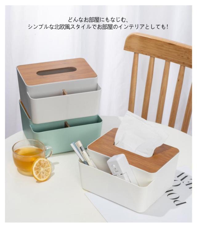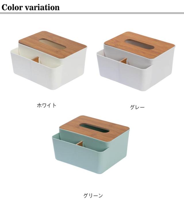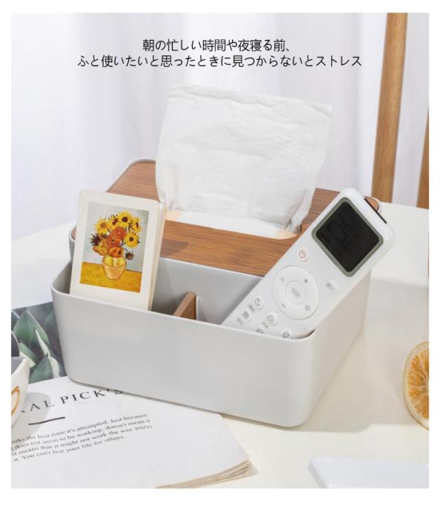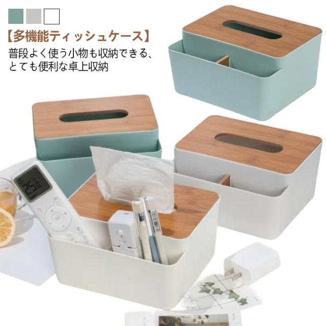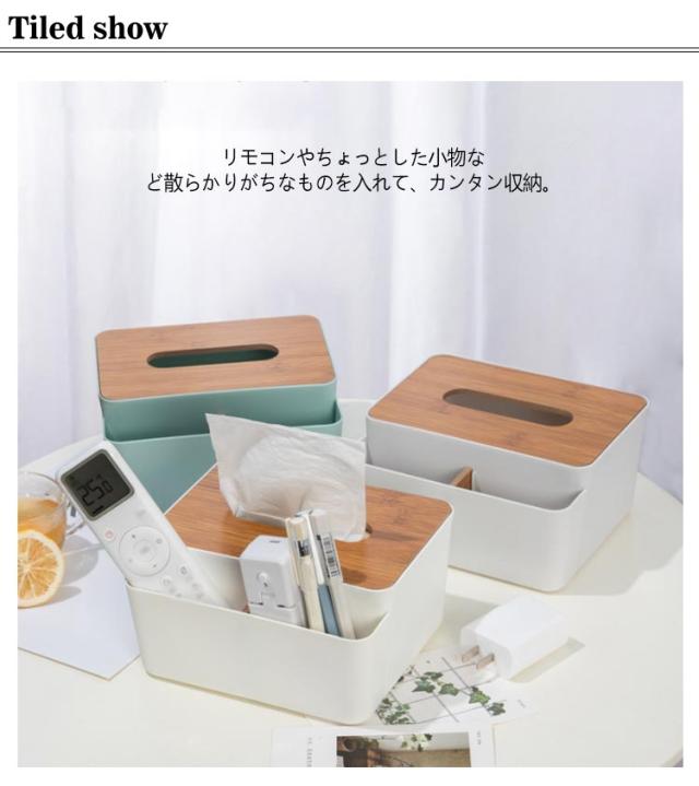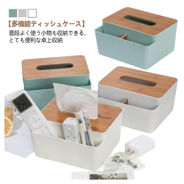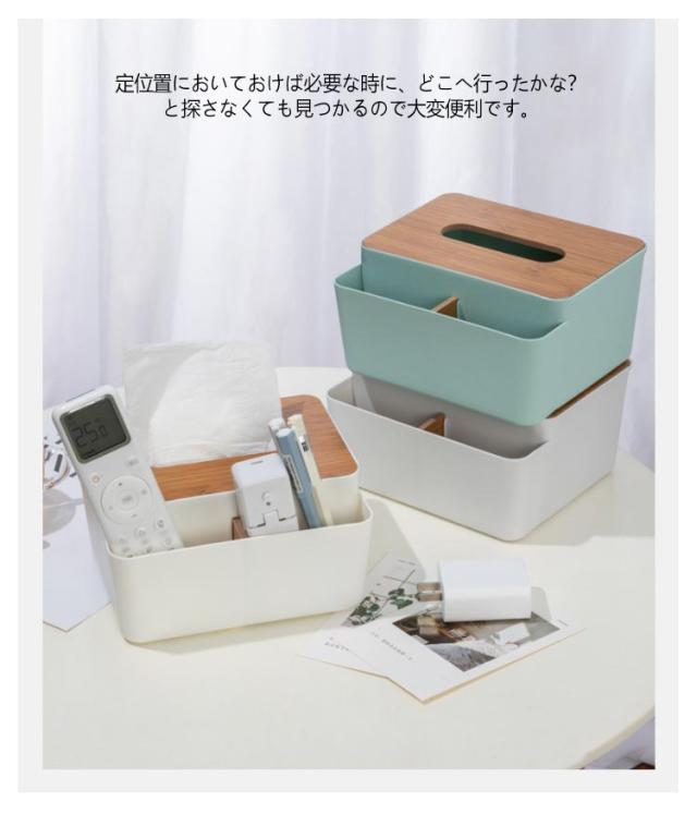 | 普段よく使う小物も収納できる、とても便利な卓上収納【多機能ティッシュケース】 リモコンやちょっとした小物など散らかりがちなものを入れて、カンタン収納。 朝の忙しい時間や夜寝る前、ふと使いたいと思ったときに見つからないとストレス… 定位置においておけば必要な時に、どこへ行ったかな?と探さなくても見つかるので大変便利です。 どんなお部屋にもなじむ、シンプルな北欧風スタイルでお部屋のインテリアとしても! リビング、寝室、玄関、洗面所、コスメ収納にもおすすめです。 | |