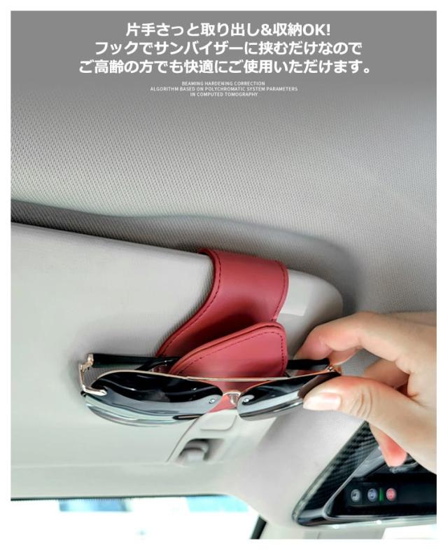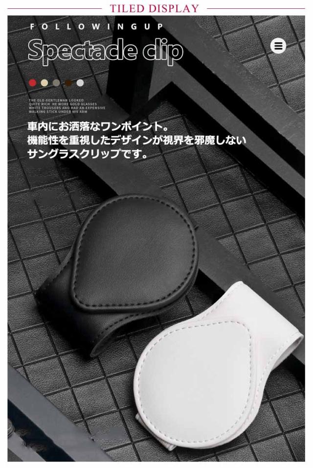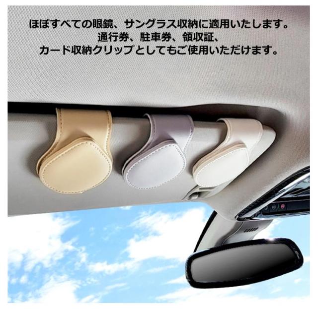 | 選べる10色 2個セット サッと取れて邪魔にならない! サングラスホルダー お好みに合わせて選べる2つの取り付け方法のある 省スペースに収納できるサングラスクリップです。 車の内装スタイルに合わせて選べる豊富な10色展開! 素材に関しても高品質PUレザーを使用し、耐久性が高くて手触りがいい仕上がりになってます。 強力なマグネットでサンバイザーを開けても落ちない! フックと磁石でしっかり留まっているのでサンバイザーの開閉も安心です。 省スペースなデザインでミラーを遮らない。 片手さっと取り出し&収納OK! フックでサンバイザーに挟むだけなのでご高齢の方でも快適にご使用いただけます。 車内にお洒落なワンポイント。 機能性を重視したデザインが視界を邪魔しないサングラスクリップです。 ほぼすべての眼鏡、サングラス収納に適用いたします。 通行券、駐車券、領収証、カード収納クリップとしてもご使用いただけます。 | |