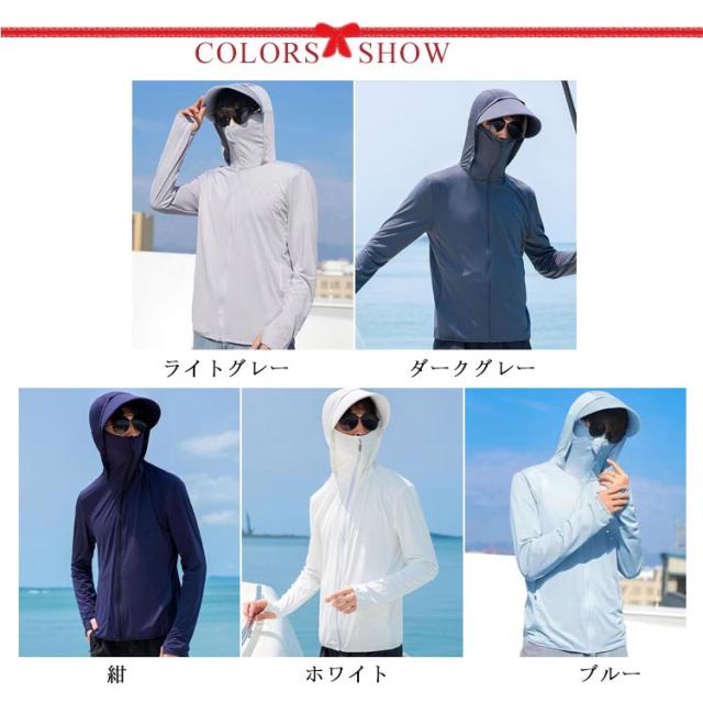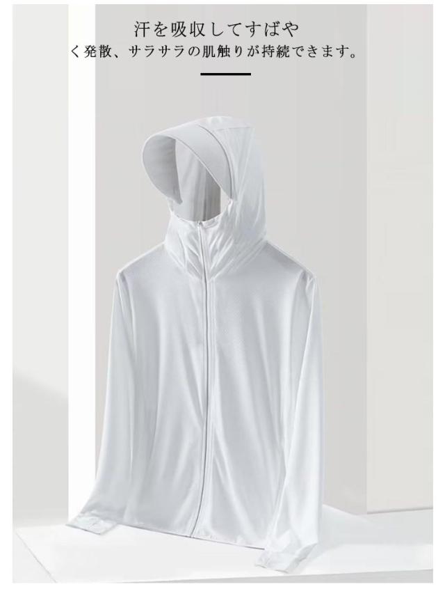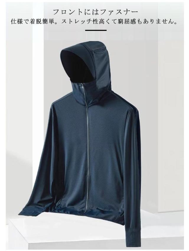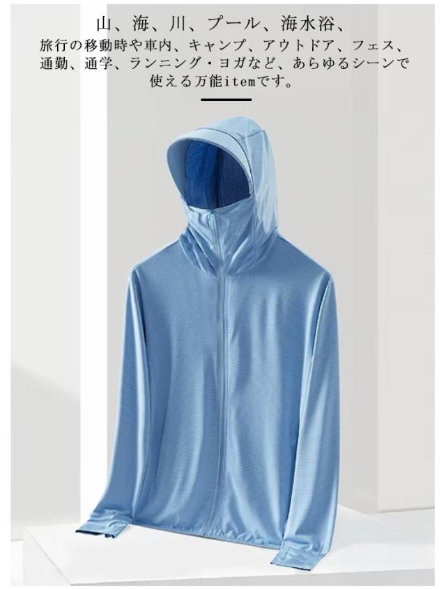 軽量 uvパーカー 涼しい パーカー uvカット ジップアップ 薄手 メンズ 接触冷感 ラッシュガード 全方位保護 ジャケット ストレッチ 長袖 フード付き ひんやり ライトアウター アイスシルクパーカー 紫外線防止