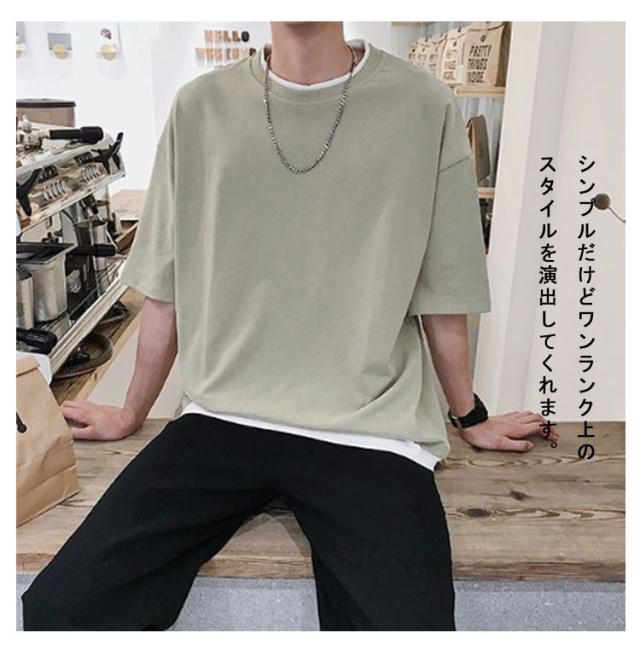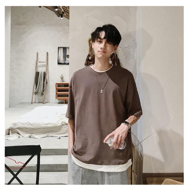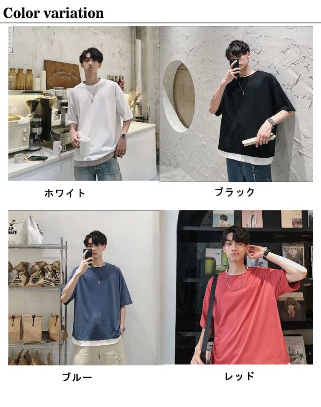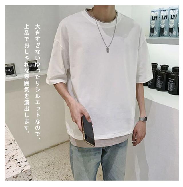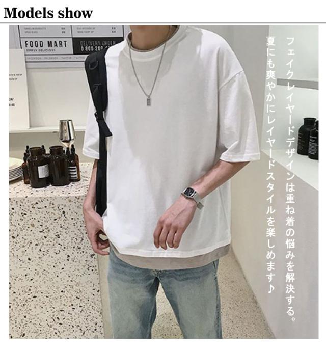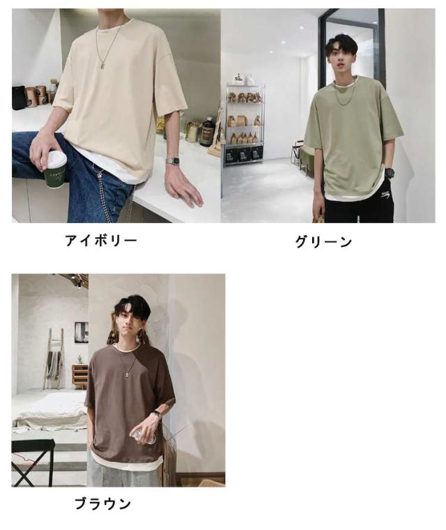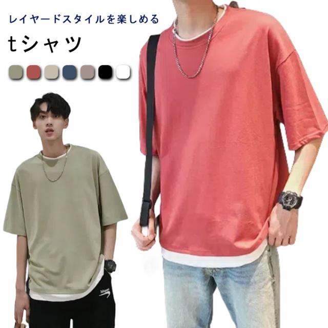 レイヤード tシャツ 韓国 おうちコーデ フェイクレイヤード ファッション メンズ 半袖 Tシャツ 無地 ビッグtシャツ Tシャツ おしゃれ ニュートラルカラー くすみカラー 大きいサイズ 夏服 男女兼用 シンプル カジュアル