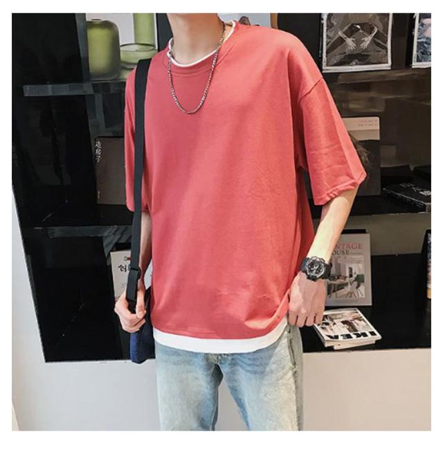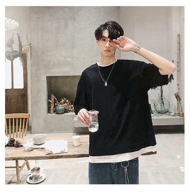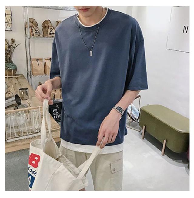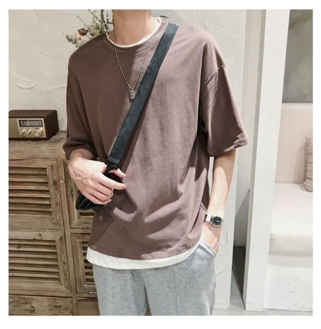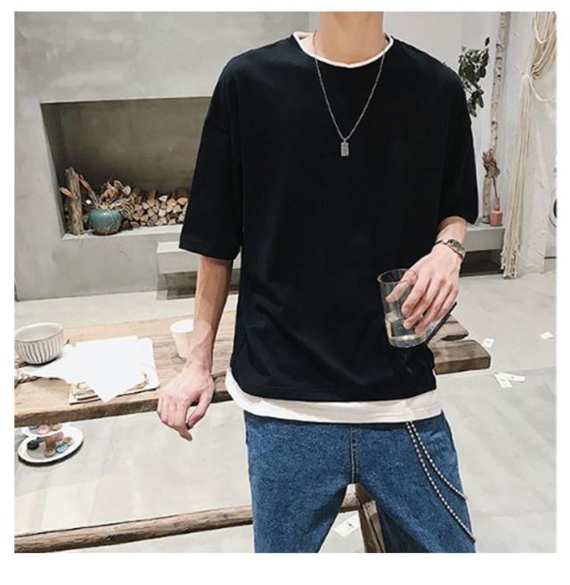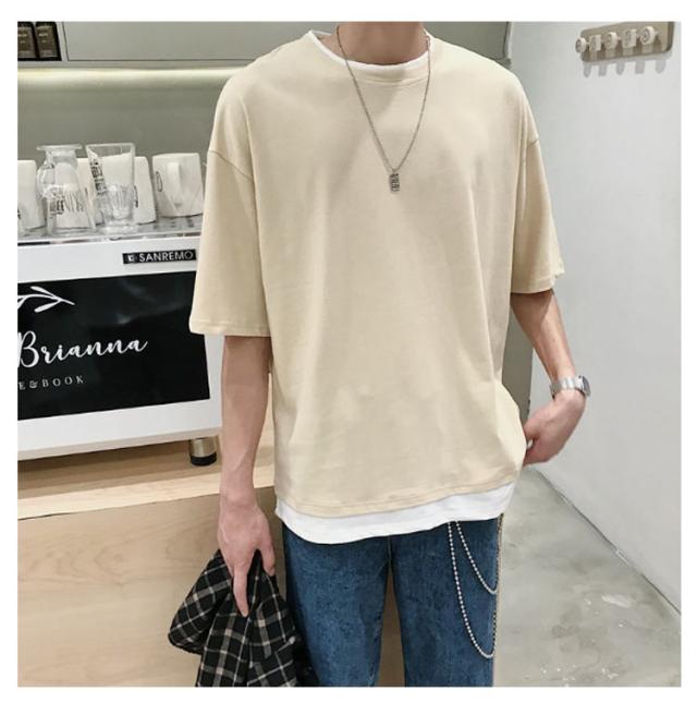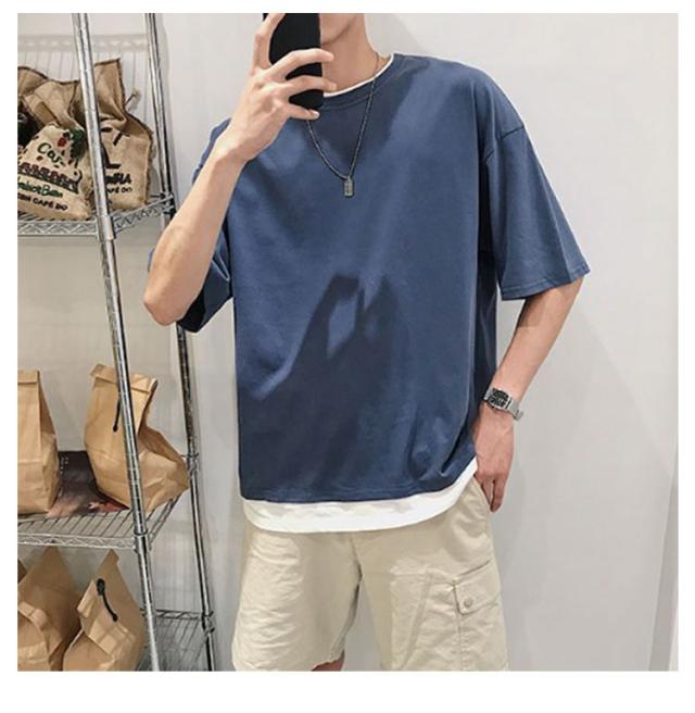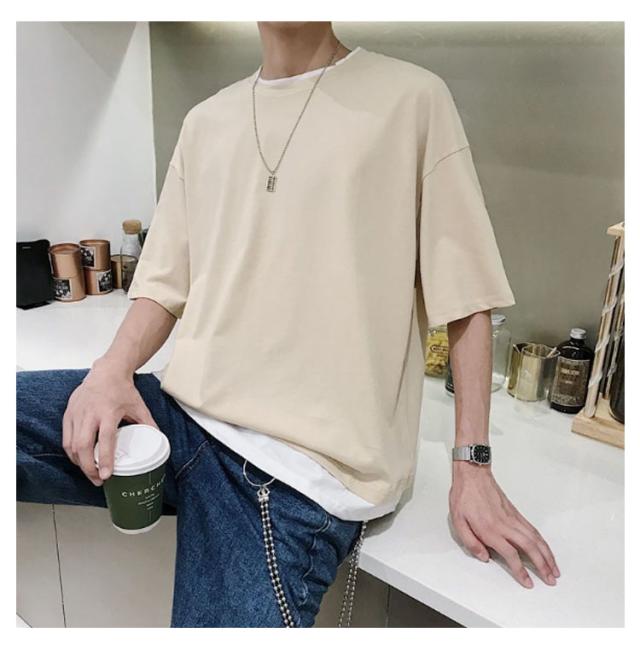 レイヤード tシャツ 韓国 おうちコーデ フェイクレイヤード ファッション メンズ 半袖 Tシャツ 無地 ビッグtシャツ Tシャツ おしゃれ ニュートラルカラー くすみカラー 大きいサイズ 夏服 男女兼用 シンプル カジュアル