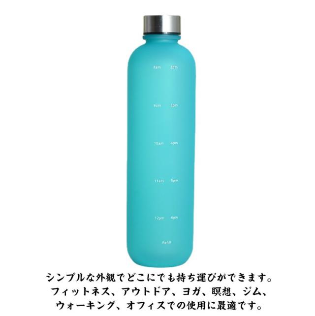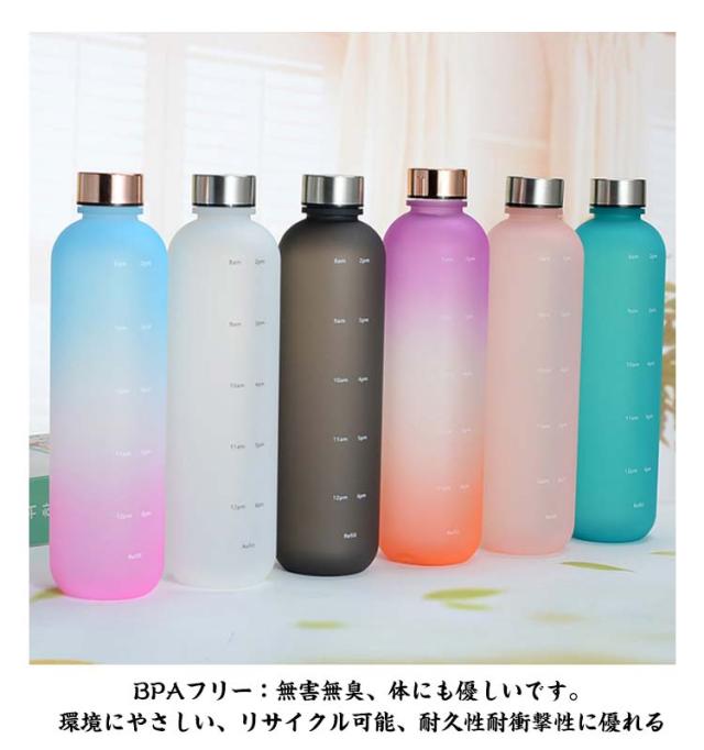 | 【1000ml】【タイムマーカー付き】【全9色】 1日に必要な水分を補給するために、タイムマーカー付きのウォーターボトル。 BPAフリー:無害無臭、体にも優しいです。環境にやさしい、リサイクル可能、耐久性耐衝撃性に優れる タイムマーカーラインは、時間通りに適切な量を飲んでいるかどうかを追跡するのに最適な方法です。 軽く、壊れにくい。 ソリッドカラーとグラデーションカラーがあります。 シンプルな外観でどこにでも持ち運びができます。フィットネス、アウトドア、ヨガ、瞑想、ジム、ウォーキング、オフィスでの使用に最適です。 漏れ防止機能付きで、かばんに入れても安心して持ち運べます。 水を飲むのが苦手な人。水を飲む習慣づけに。 | |