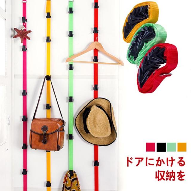 ドアフック ハンガーフック インテリア ロング 収納 ドア 8連 おしゃれ 壁掛 ベルト ドアフック ドアハンガー 簡単 取り付け コンパクト ドア用 コートハンガー コート掛け 帽子掛け 扉 ドアフック クローゼット収納 ベルト タイプ フック ヘルメット
