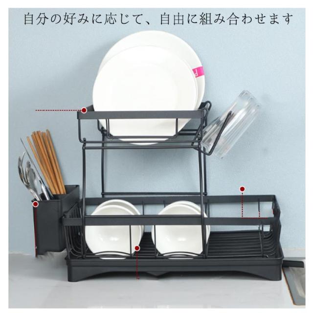 | 2段式 水切りラック 多機能 様々な食器収納用部品を付き、お客様の用途によって自由に組み合わせて使用いただけます 自分の好みに応じて、自由に組み合わせます 大容量の2段水切りラック | |