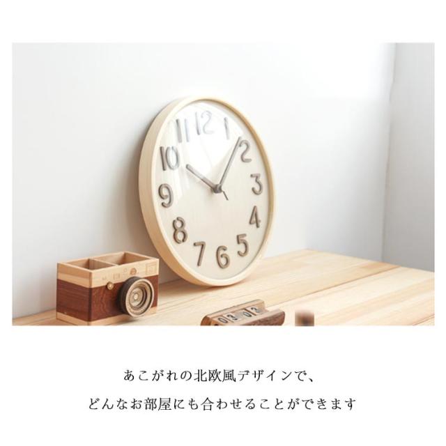 | ウッドウォールクロック 美しい天然木材を用いたフレームが優しい上品掛け時計 あこがれの北欧風デザインで、どんなお部屋にも合わせることができます | |