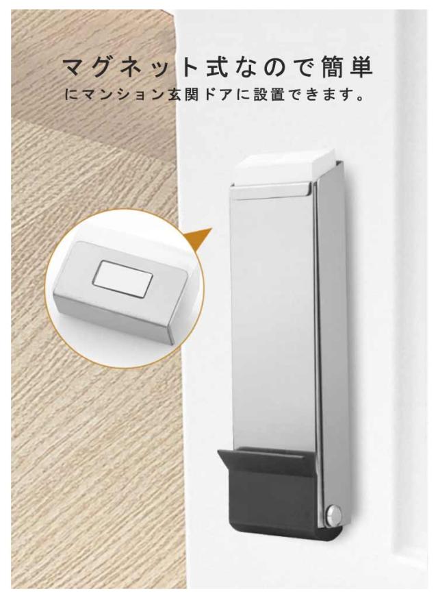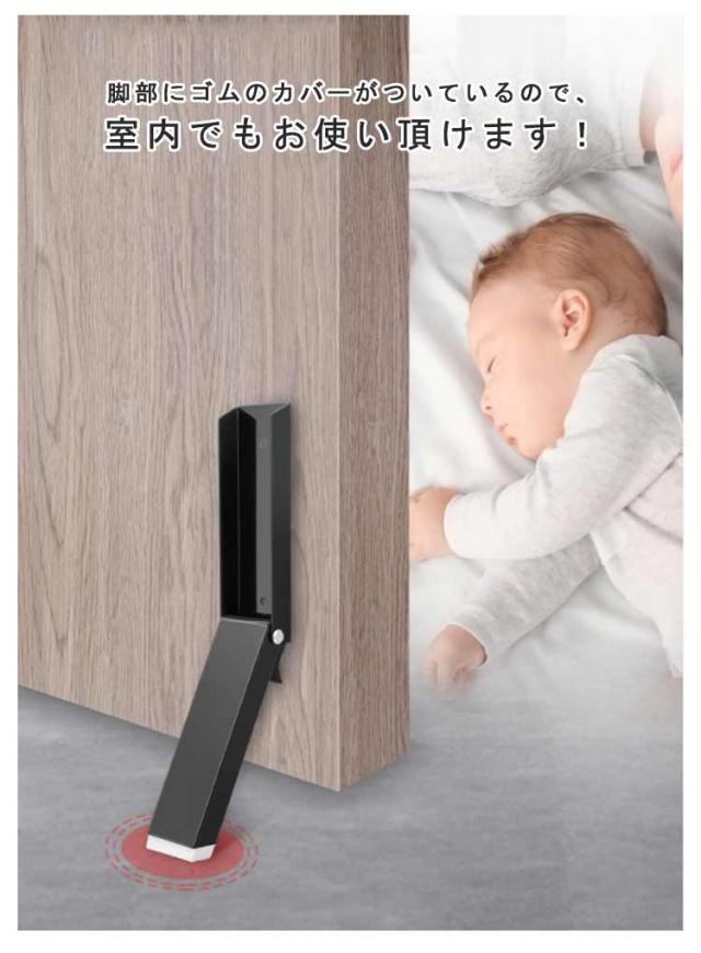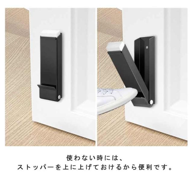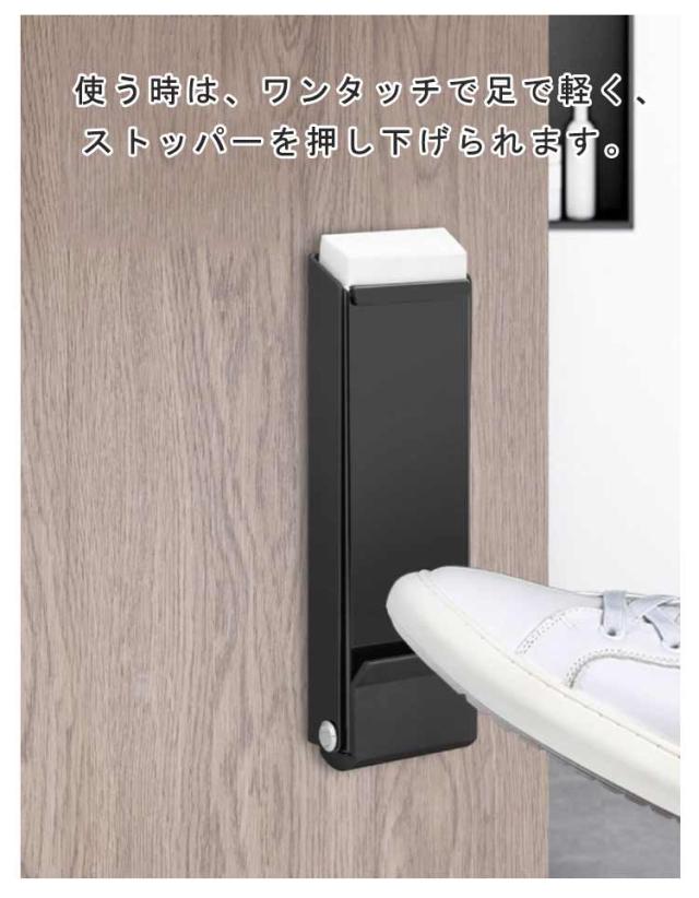 | 大きな荷物を出し入れしたり、室内換気のために扉を固定したい時、あると便利なドアストッパー。 マグネット式なので簡単にマンション玄関ドアに設置できます。 脚部にゴムのカバーがついているので、室内でもお使い頂けます! ワンタッチ式で簡単操作。ドアと床の間11cmまで対応! 使う時は、ワンタッチで足で軽く、ストッパーを押し下げられます。 使わない時には、ストッパーを上に上げておけるから便利です。 | |