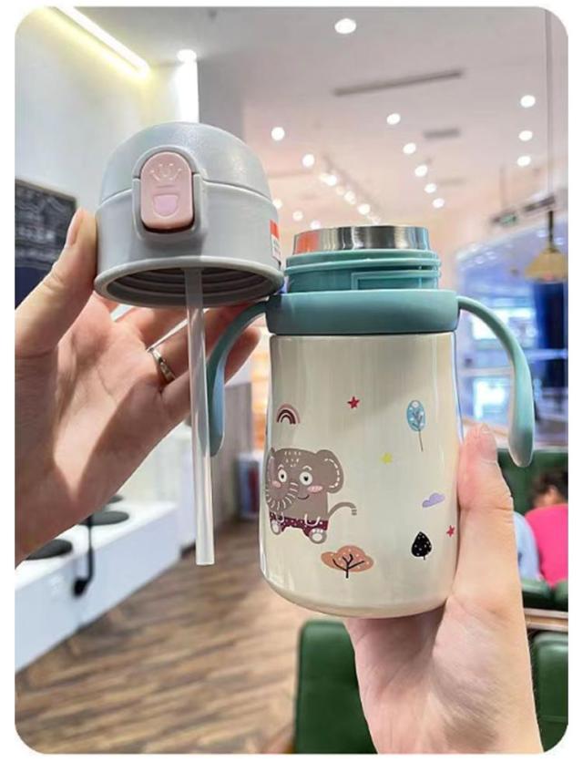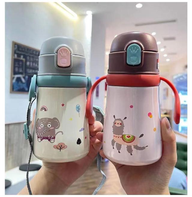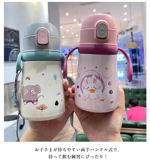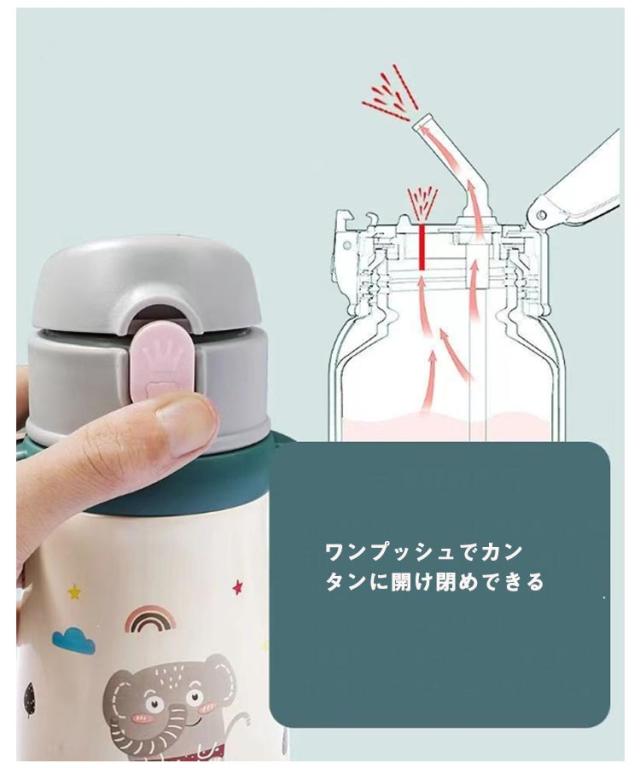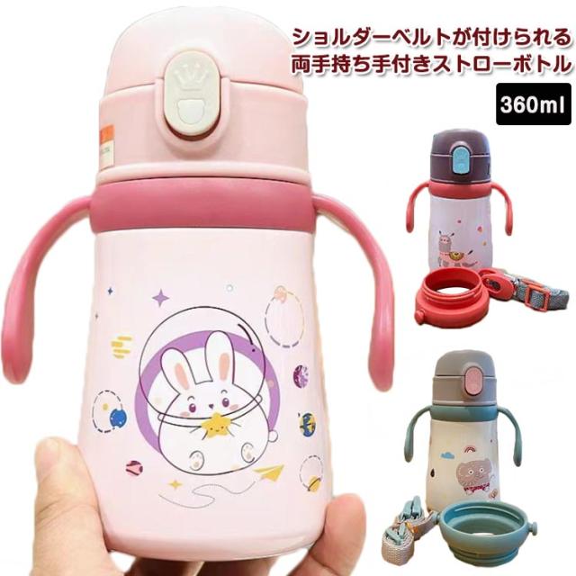 女の子 ステンレスマグ 赤ちゃん 持ち手付き 子供用水筒 保温保冷 男の子 ステンレス製 360ml ベビー 子供用水筒 真空断熱 ワンタッチ 肩掛け 魔法瓶 漏れない 軽量 プレゼント ギフト かわいい 小学生 入学 入園