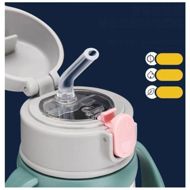 | ・ショルダーベルトが付けられる両手持ち手付きストローボトル ・飲みやすいストロータイプ ・お子さまが持ちやすい両手ハンドル式で、持って飲む練習にぴったり! ・持ち手は取りはずし可能で、ショルダーベルトに付け替えることができる2wayタイプです。 ・ワンプッシュでカンタンに開け閉めできる ・温かさと冷たさをしっかりキープするステンレス真空二重構造なのもポイントです。 ・底にはシリコン製の滑り止めカバーつきで倒れにくい。 | |