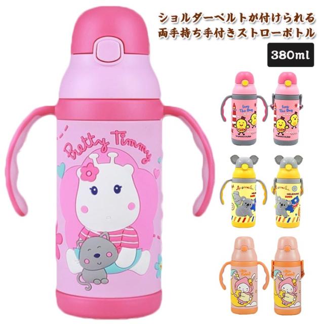 子供用水筒 真空断熱 子供用水筒 女の子 380ml ギフト ステンレス製 ステンレスマグ 赤ちゃん 軽量 両手 男の子 ワンタッチ 肩掛け 魔法瓶 漏れない 保温保冷 プレゼント ベビー かわいい 小学生 入学 入園