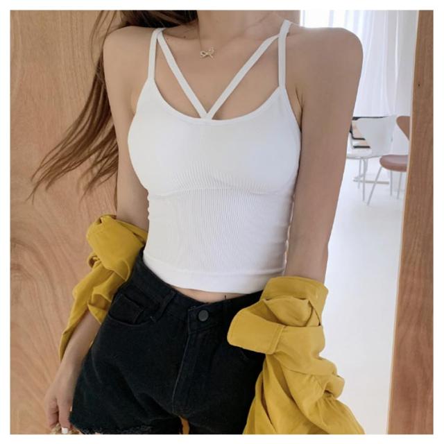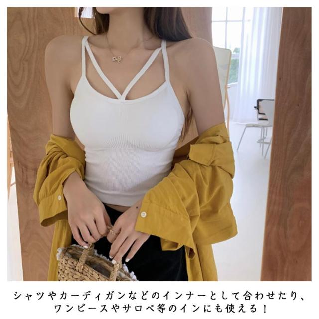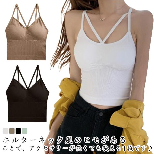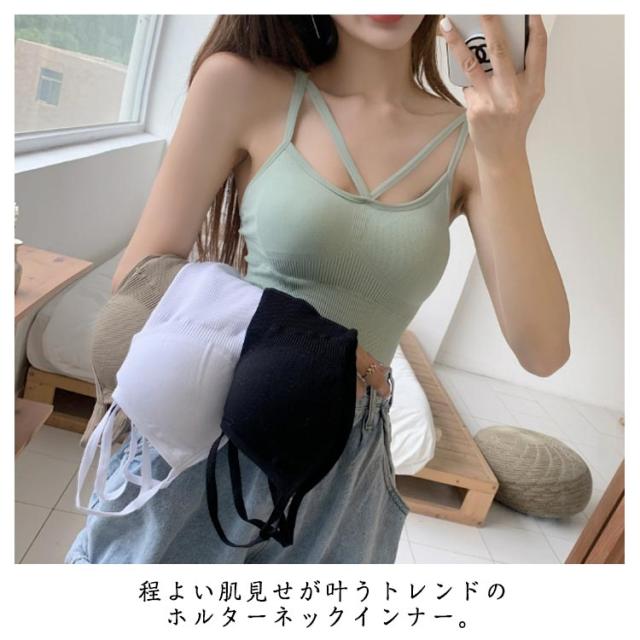 キャミ トップス レディース カップ付 夏 春 インナー おしゃれ ホルターネック シンプル ホルターネック風 カジュアル レイヤード 重ね着 キャミソール カップ付きキャミ キャミインナー リブ生地 無地 伸縮性
