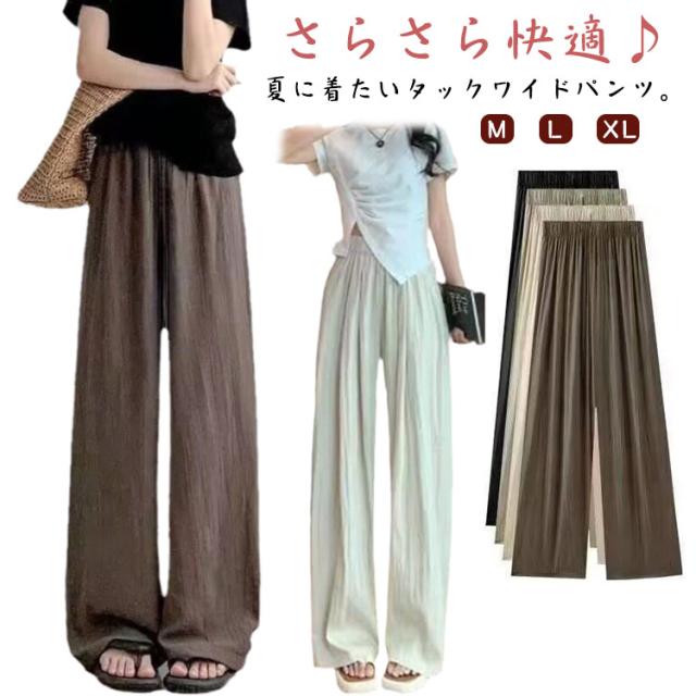 ボトムス レディース イージーパンツ 涼しい ガウチョパンツ ロングパンツ さらさら シワ加工 ワイドパンツ UVカット ひんやり ガウチョ 夏 ワイド ワイドパンツ 薄手 ズボン 長ズボン リラックス ウエストゴム ゆったり 春 夏用 楽ち
