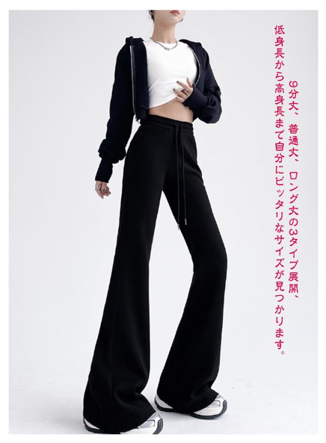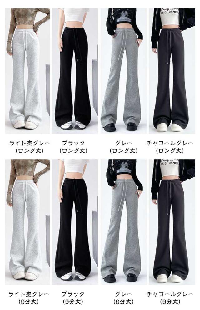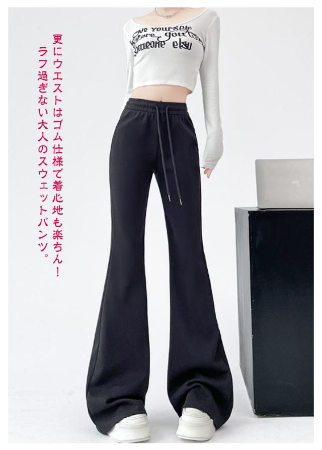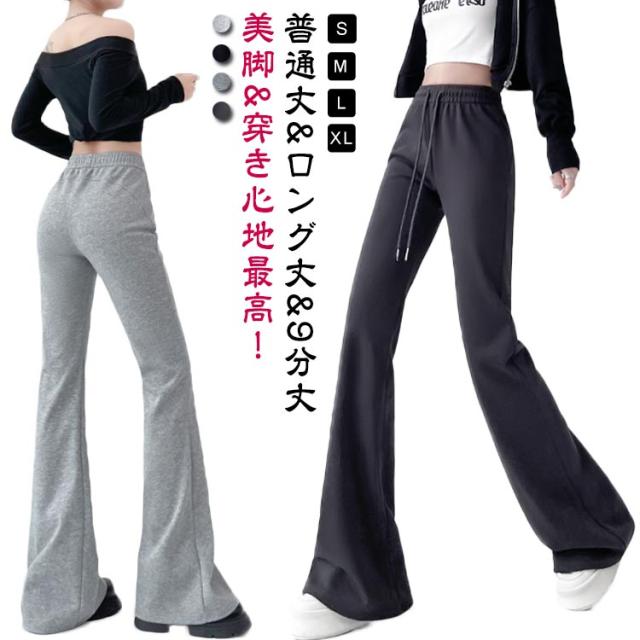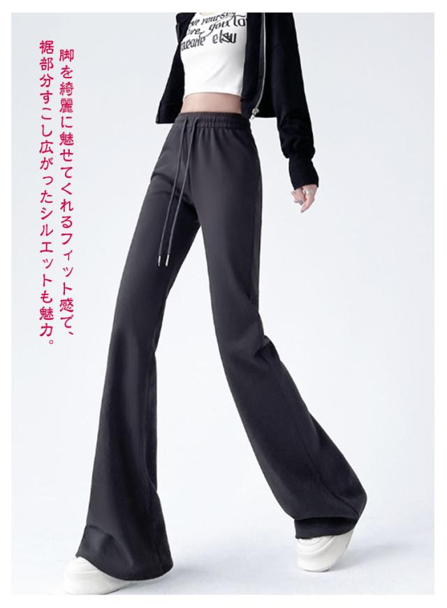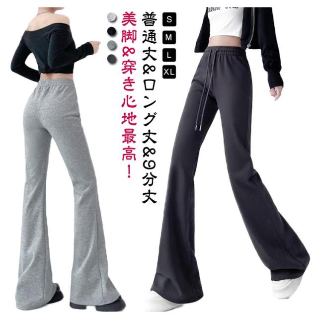 スウェットパンツ 美脚 ワイドパンツ ベルボトム ブーツカットパンツ フレアパンツ スエット スエット パンタロン レディース ロングパンツ ハイウエスト 9分丈 ラッパズボン フレア ガウチョパンツ 着痩せ スポーツパンツ イージーパンツ