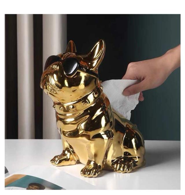玄関 インテリア 飾り物 送料無料 犬 可愛い ティッシュボックス 置物 ティッシュケース リビング 陶器 お洒落 贈り物 引越し祝い メッキ 北欧風 雑貨 結婚祝い 動物置物 犬置物 ワンちゃん ギフト