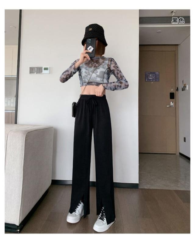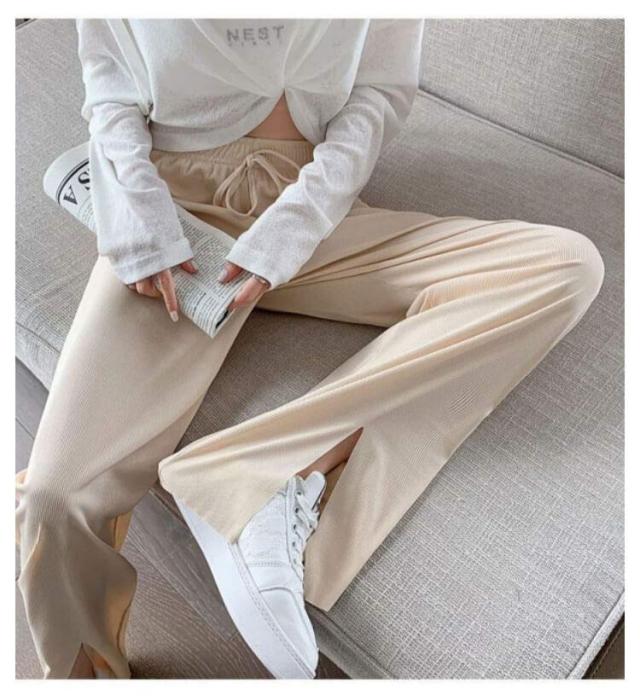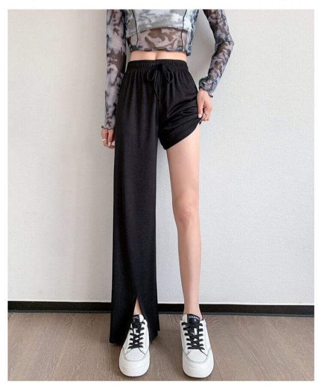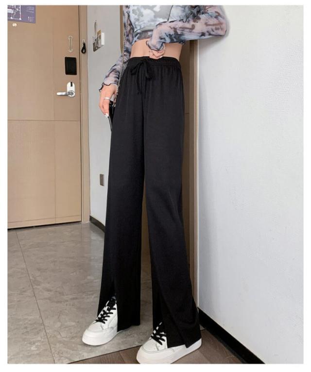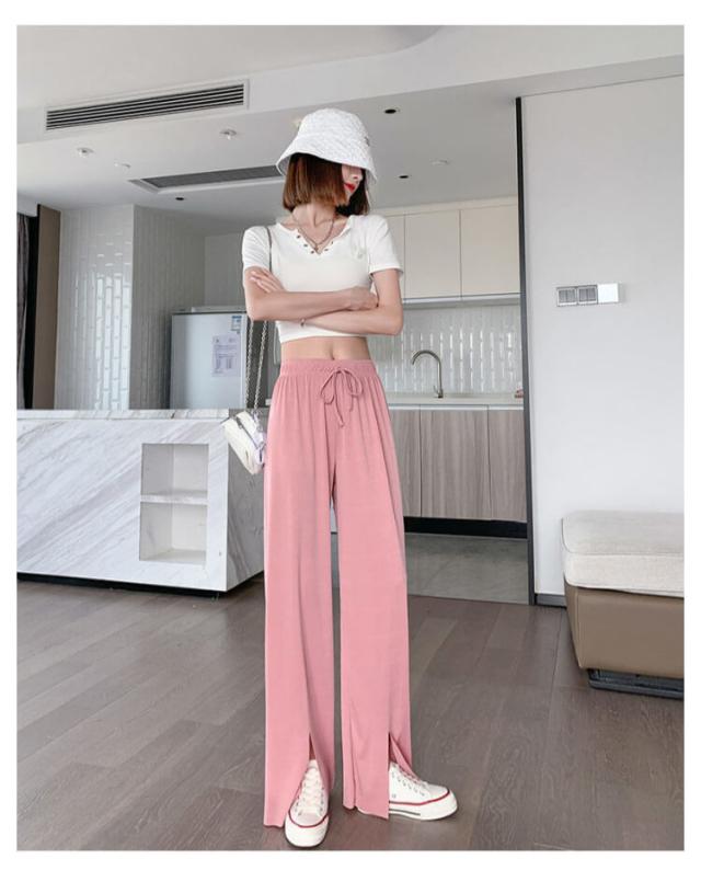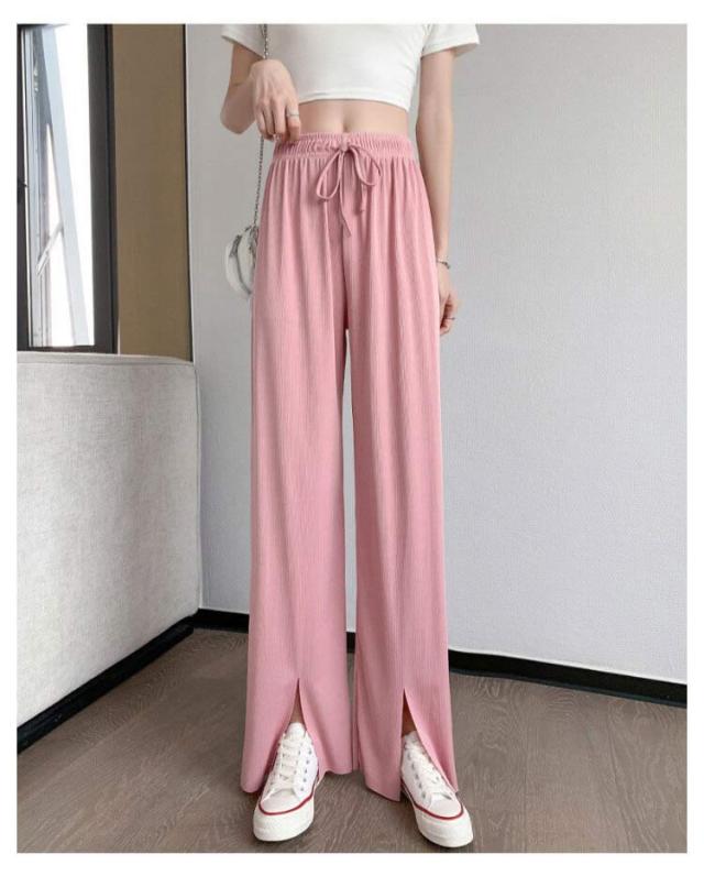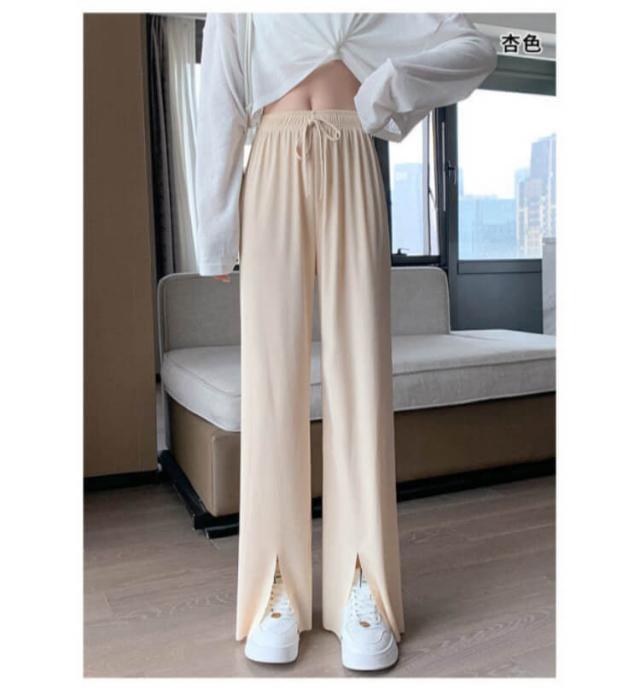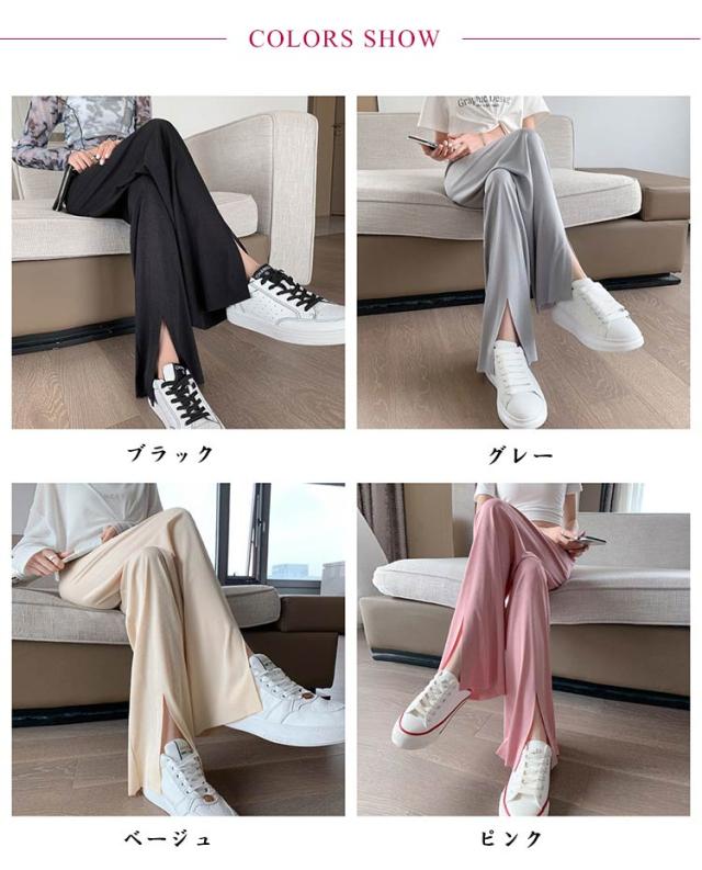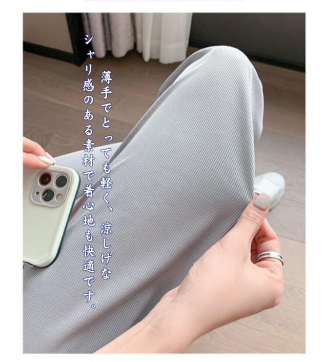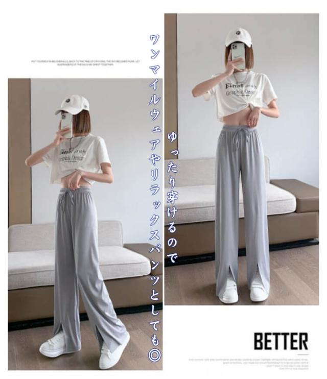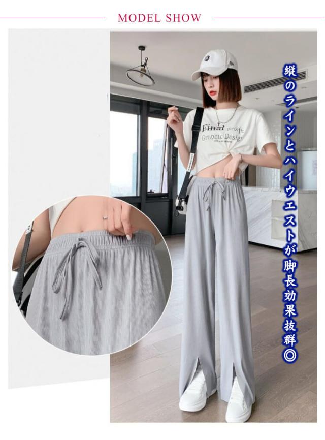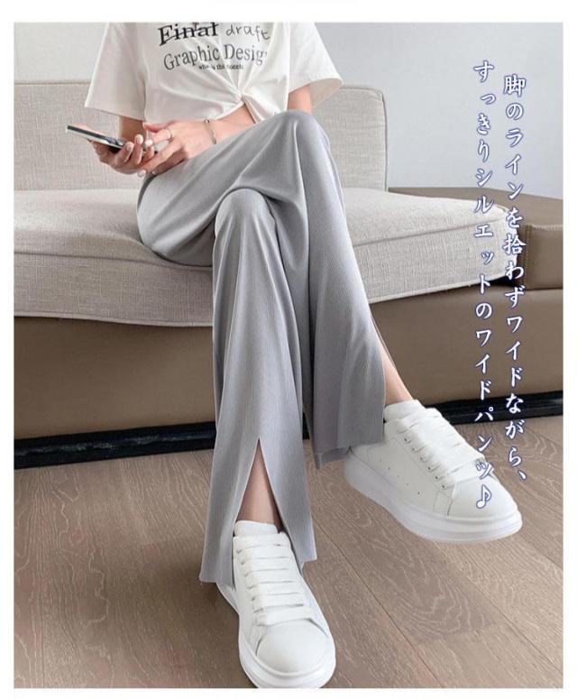 冷感パンツ ワイドパンツ レディース イージーパンツ 接触冷感 ワイド リブ 薄手 ワイドパンツ プリーツパンツ 涼しい センタースリット 涼感 COOL 楽ちん ワンマイルウェア ボトムス 部屋着 ストレート ハイウエスト プリーツ カジュアル 春