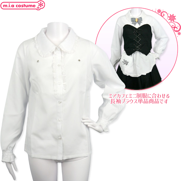 1154C■【送料無料・即納】ミアカフェミニ制服 長袖ブラウス単品 色:白 サイズ:S/M/L 公式 オフィシャル メイド服 ミニ丈 メイド喫茶 メイドカフェ 秋葉原