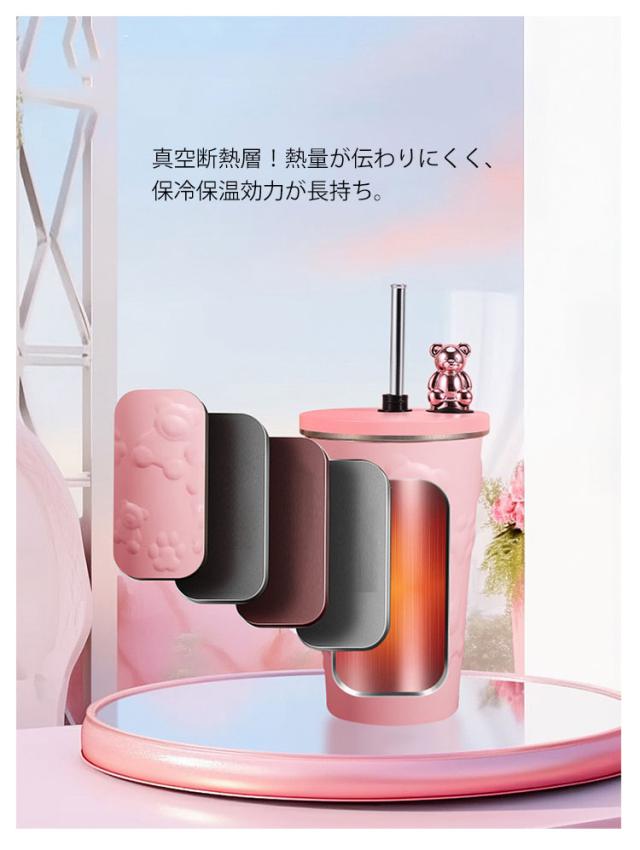 | ストロー付きタンブラー。 女の子も片手で握られるサイズ、落としにくい。 溢れにくいデザイン! ワイドサイズ設計で、氷を入れることが便利です。 様々な飲み物に適用!寒いものも、熱いものも入れられる。 真空断熱層!熱量が伝わりにくく、保冷保温効力が長持ち。 色んなシーンで気軽く使える!オフィッス、自宅、学校など、どこでも美味しい飲み物を楽しめます。 | |