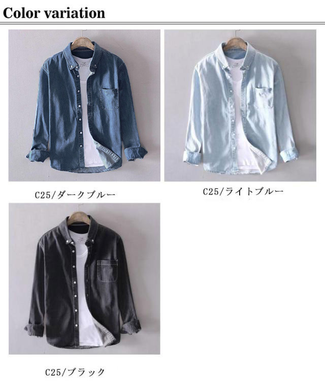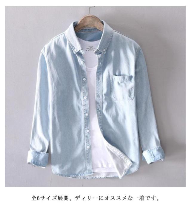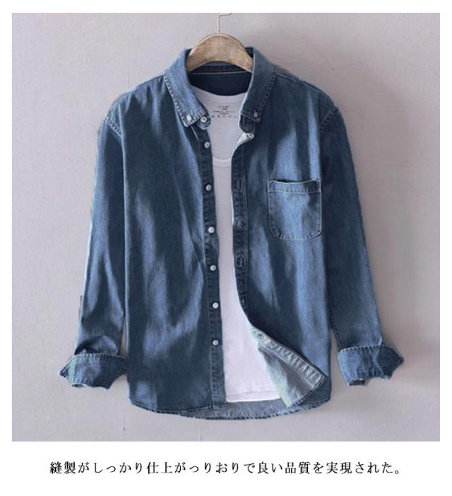 | 大人気のメンズデニムシャツ! 柔らかな肌触り感優しいデニム素材を採用。 縫製がしっかり仕上がっりおりで良い品質を実現された。 シンプル無地typeで幅広いスタイルに対応できるデザインに仕上がっています。 全6サイズ展開、ディリーにオススメな一着です。 | |