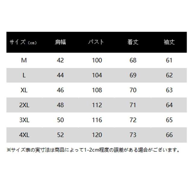 | サイズ | M L XL 2XL 3XL 4XL |