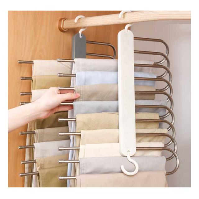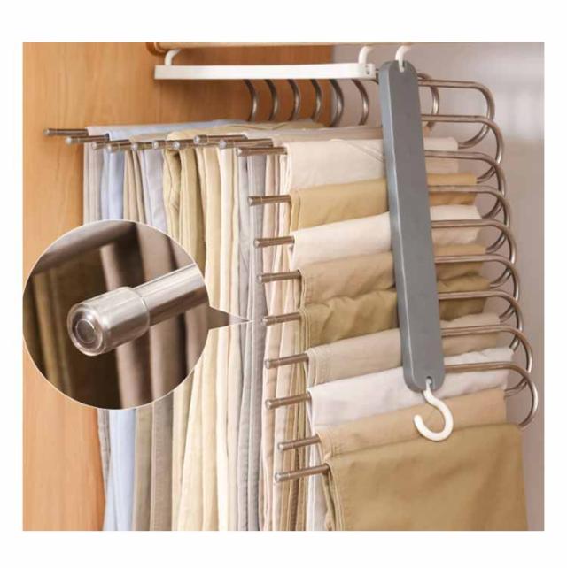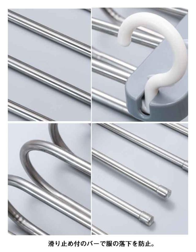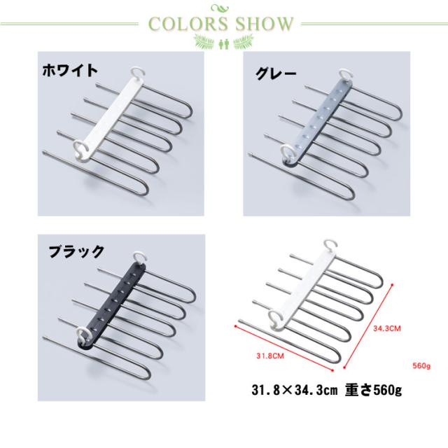衣類ハンガー ズボンハンガー 5連タイプ ステンレスフック 多機能 滑り止め付き 折り畳み式 収納 落下防止 縦 横 2WAY スラックスハンガー パンツハンガー ズボン5本収納 省スペース インテリア雑貨 整理 便利グッズ 可動式 グレー ホワイト ブラック 送料無料